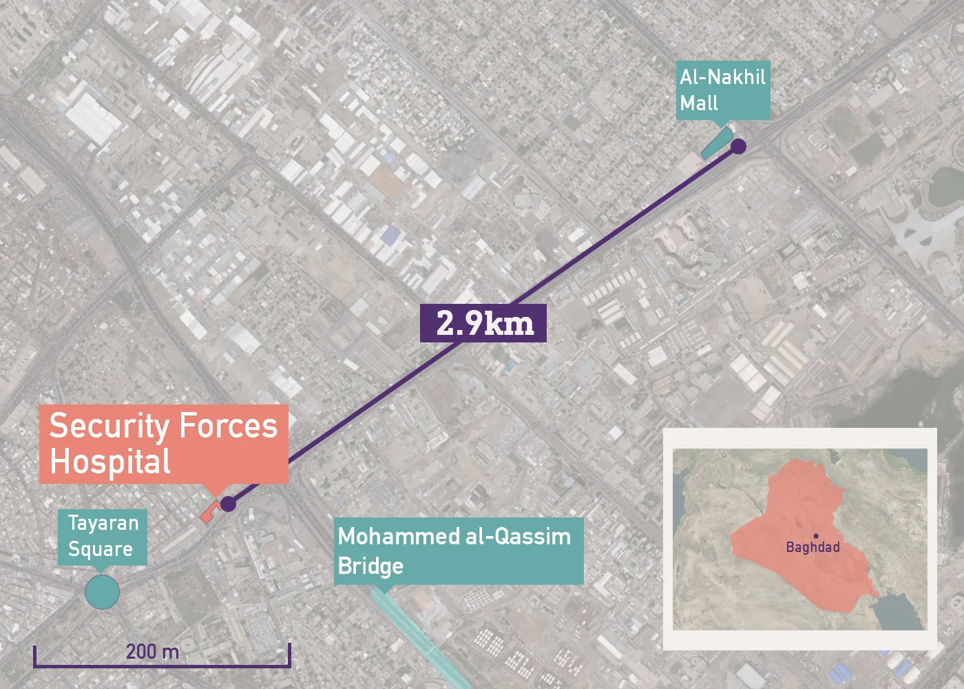 It noted that the largest number of deaths in Baghdad had happened in the area near al-Nakheel Mall.