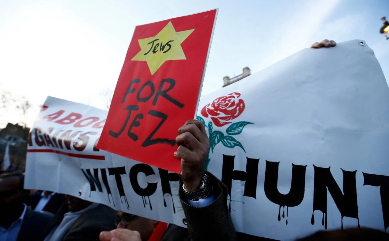 Photo: Supporters of then-Labour leader Jeremy Corbyn protest against a rally organised by the British Board of Jewish Deputies in opposition to antisemitism in the Labour Party in Parliament Square, London in March 2018 (Reuters)