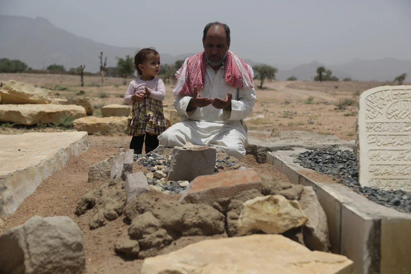 The family ran from village to village but everywhere there were air strikes. Nouria Awbali was heavily pregnant when the fighting started and gave birth to her daughter Regan as they were escaping from a new wave of Saudi attacks.