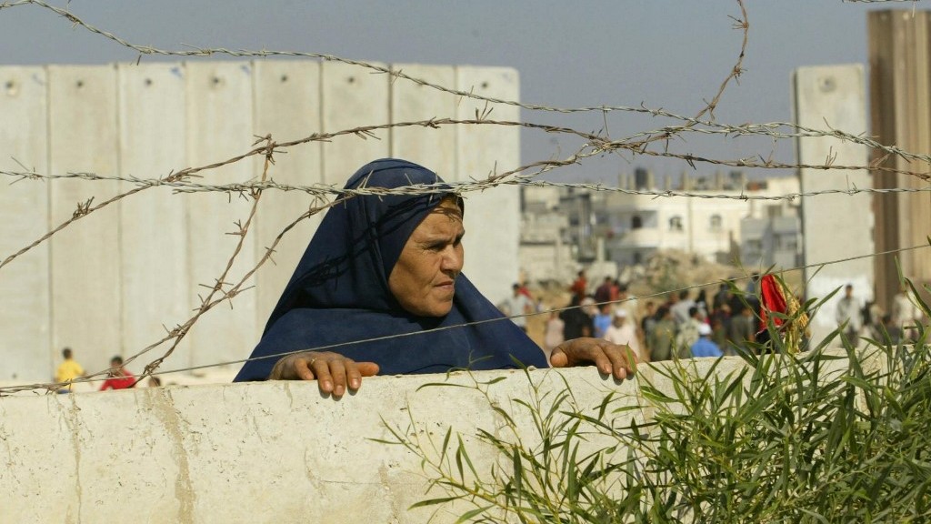 Top image: A Palestinian woman stands while looking into Egypt along the Gaza-Egypt boundary on 12 September 2005 (AFP)