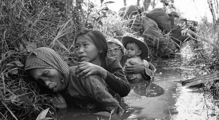 Photo: Vietnamese peasants cower in a ditch during a battle between Vietnamese and American forces (Bas Feijen/Wikicommons)