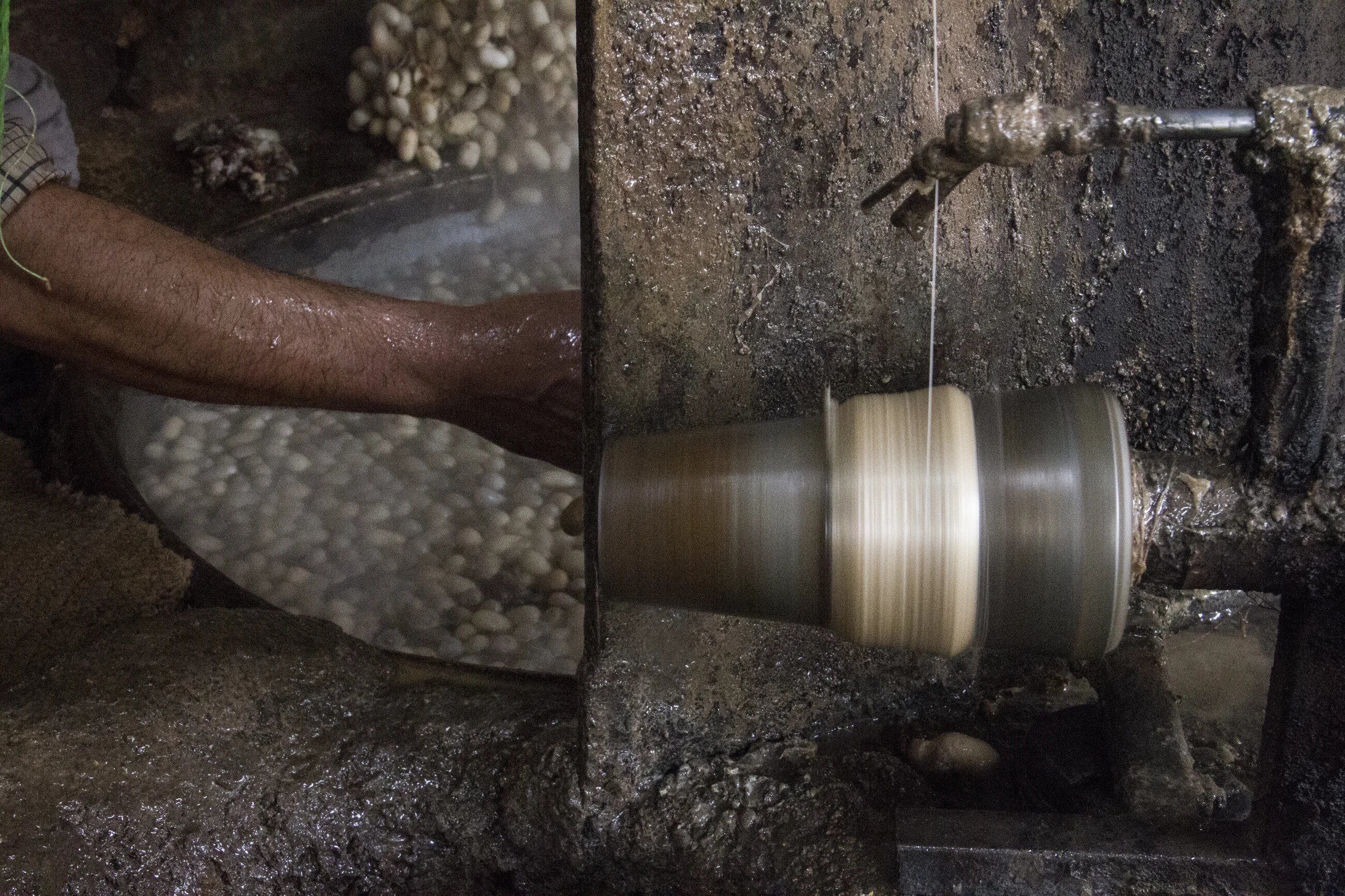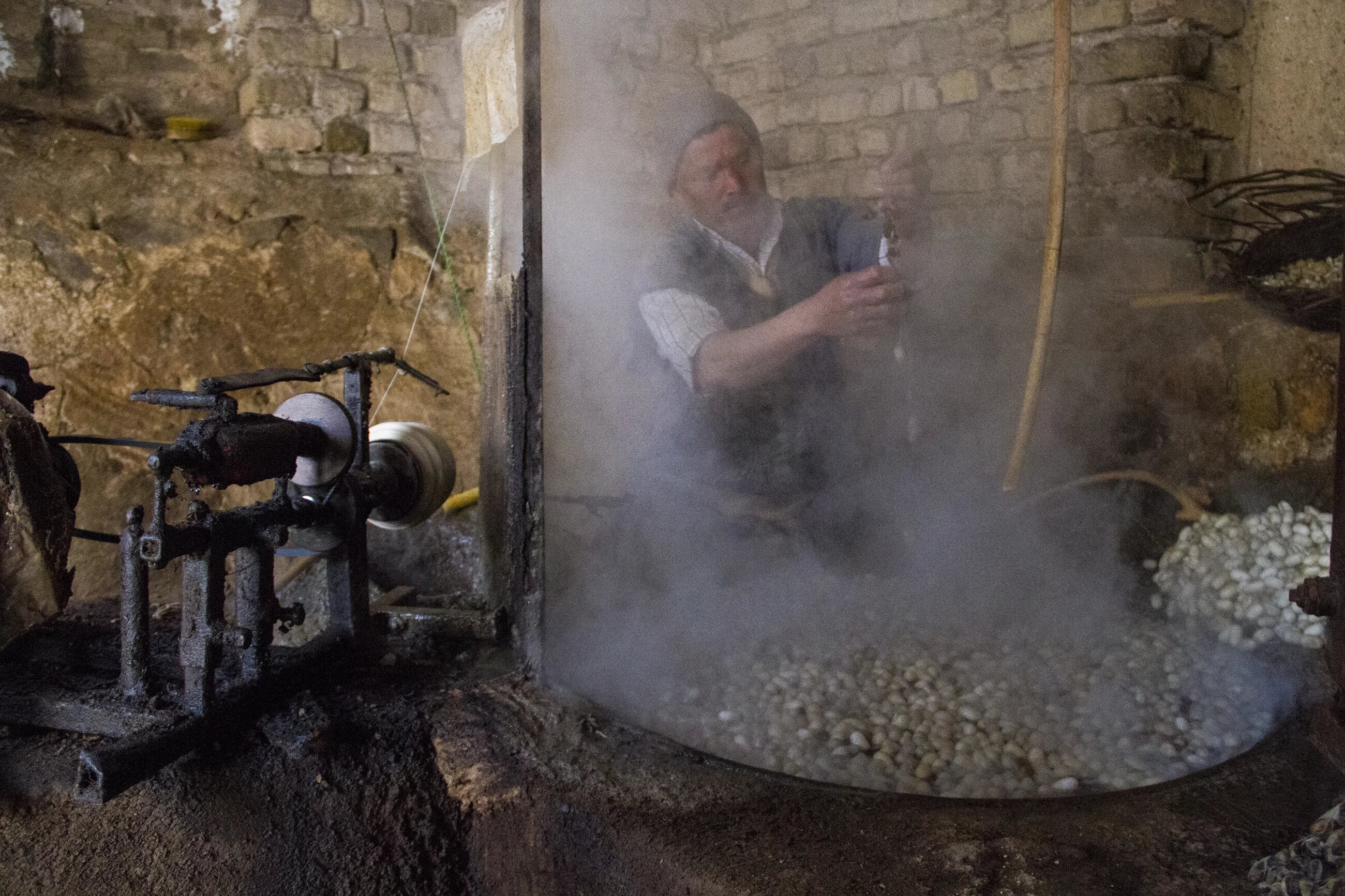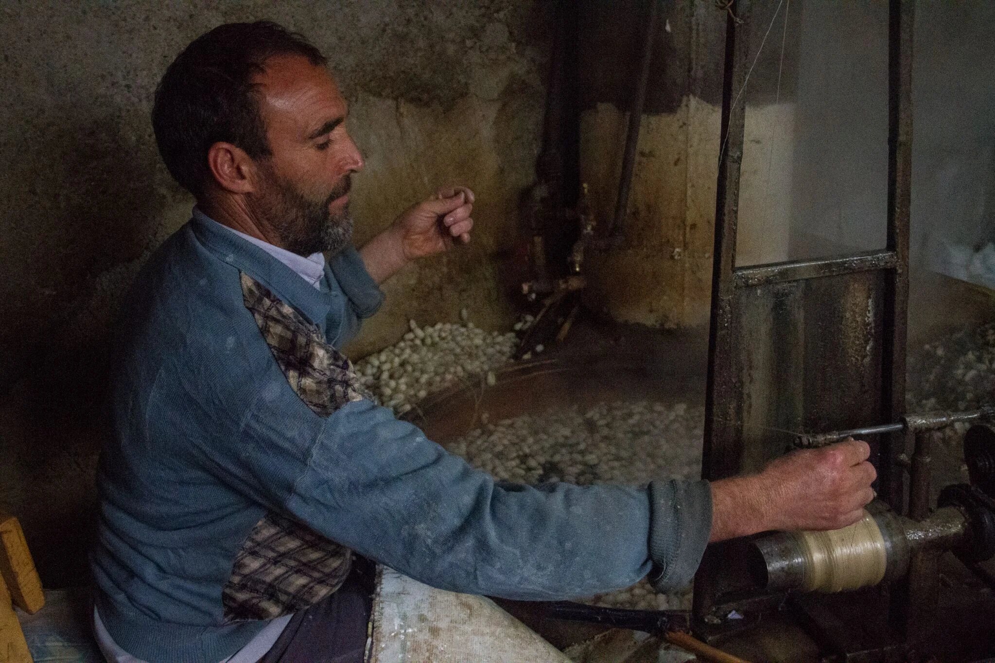It was from his father that 47-year-old Gholamreza Mohammadi learnt how to unravel silk filaments from silk cocoons. Every day, Mohammadi spends between four and five hours reeling silk in the dark and damp workshop at the end of his courtyard.