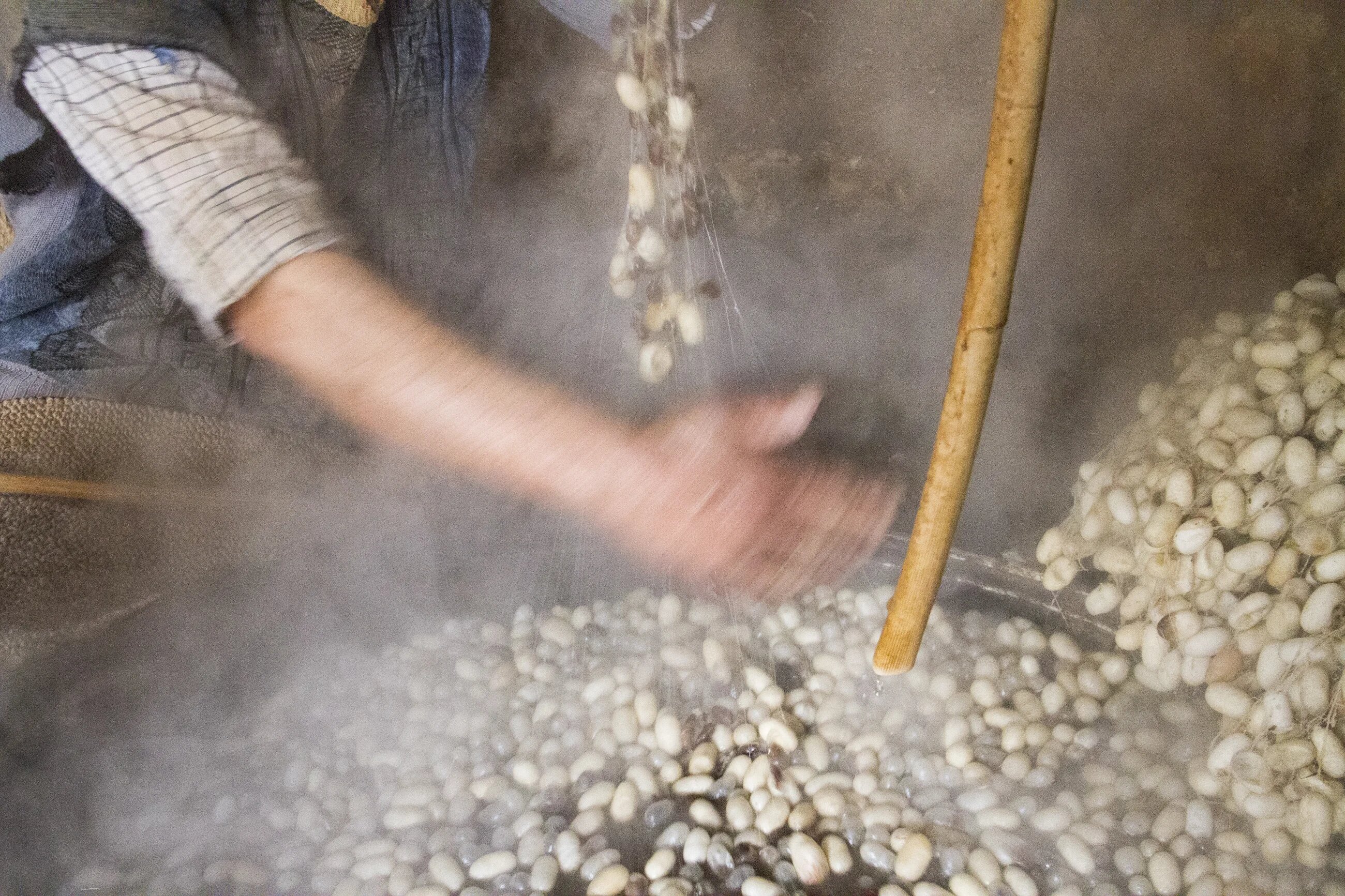 And it is indeed a long-winded process. According to another silk producer in Bask, Hojjat Amini, an entire family of four people or more might work for 12 hours straight to produce one kilogram of silk thread.