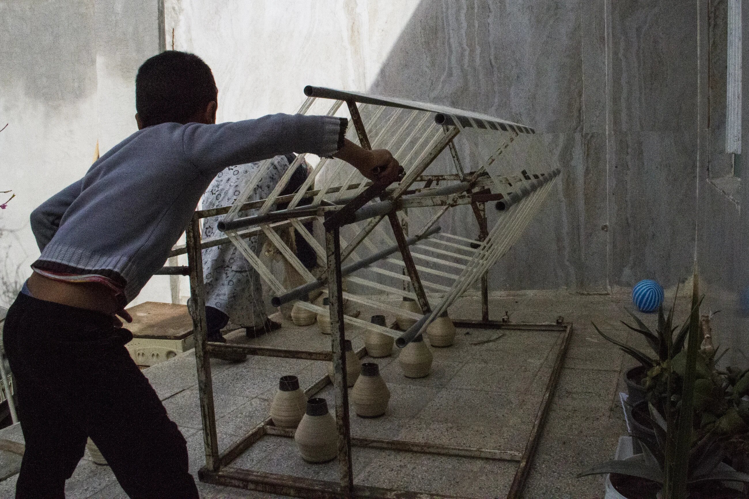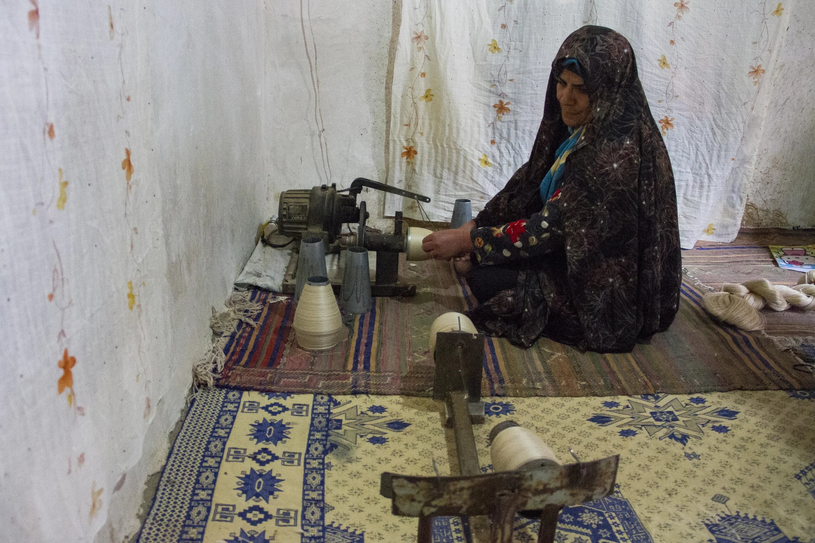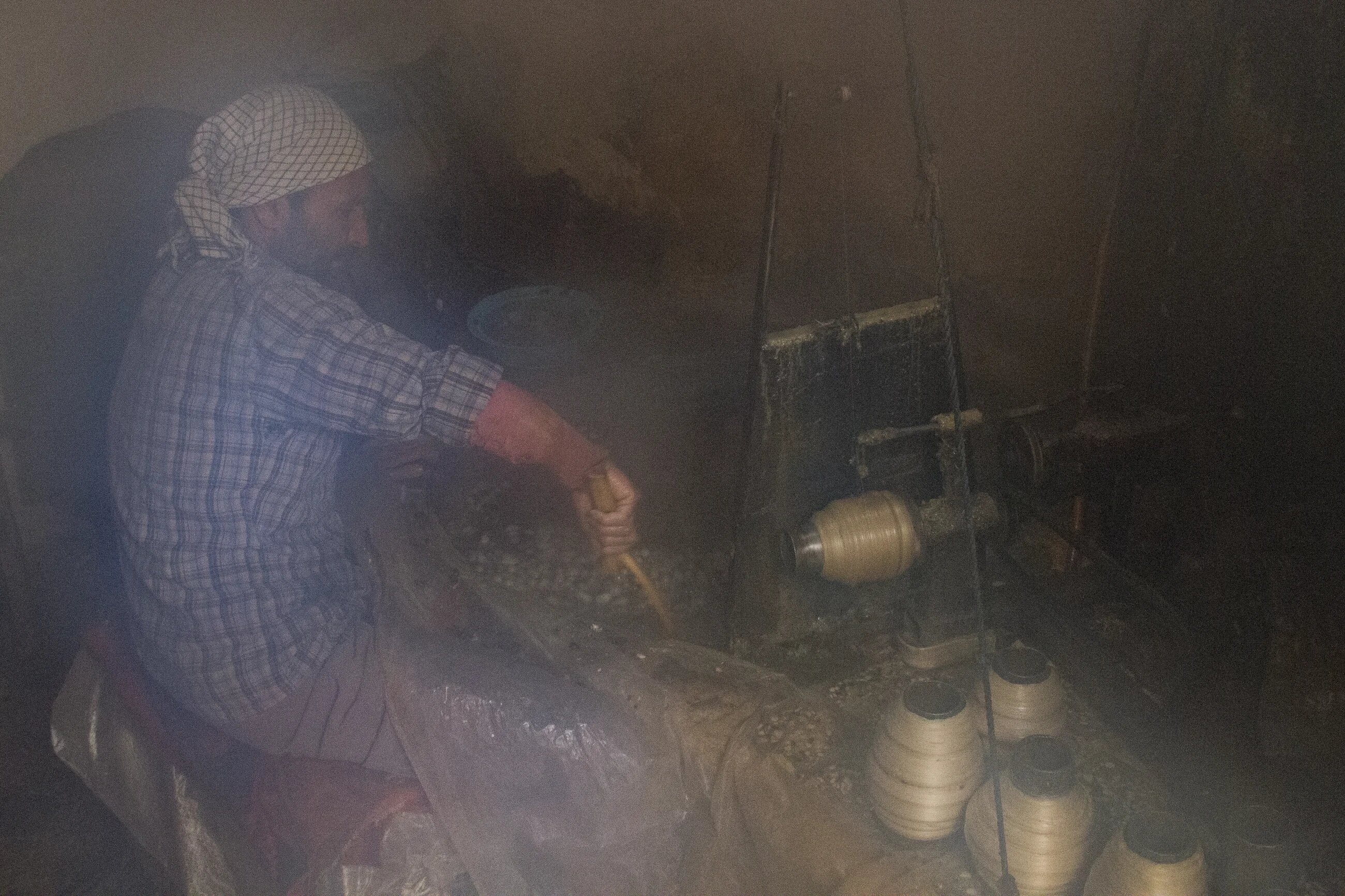 Each member of the family plays a role in the process. Nine-year-old Shir-mohammad helps his mother with the final stage of the silk thread production, where several threads are gathered together to form bundles.