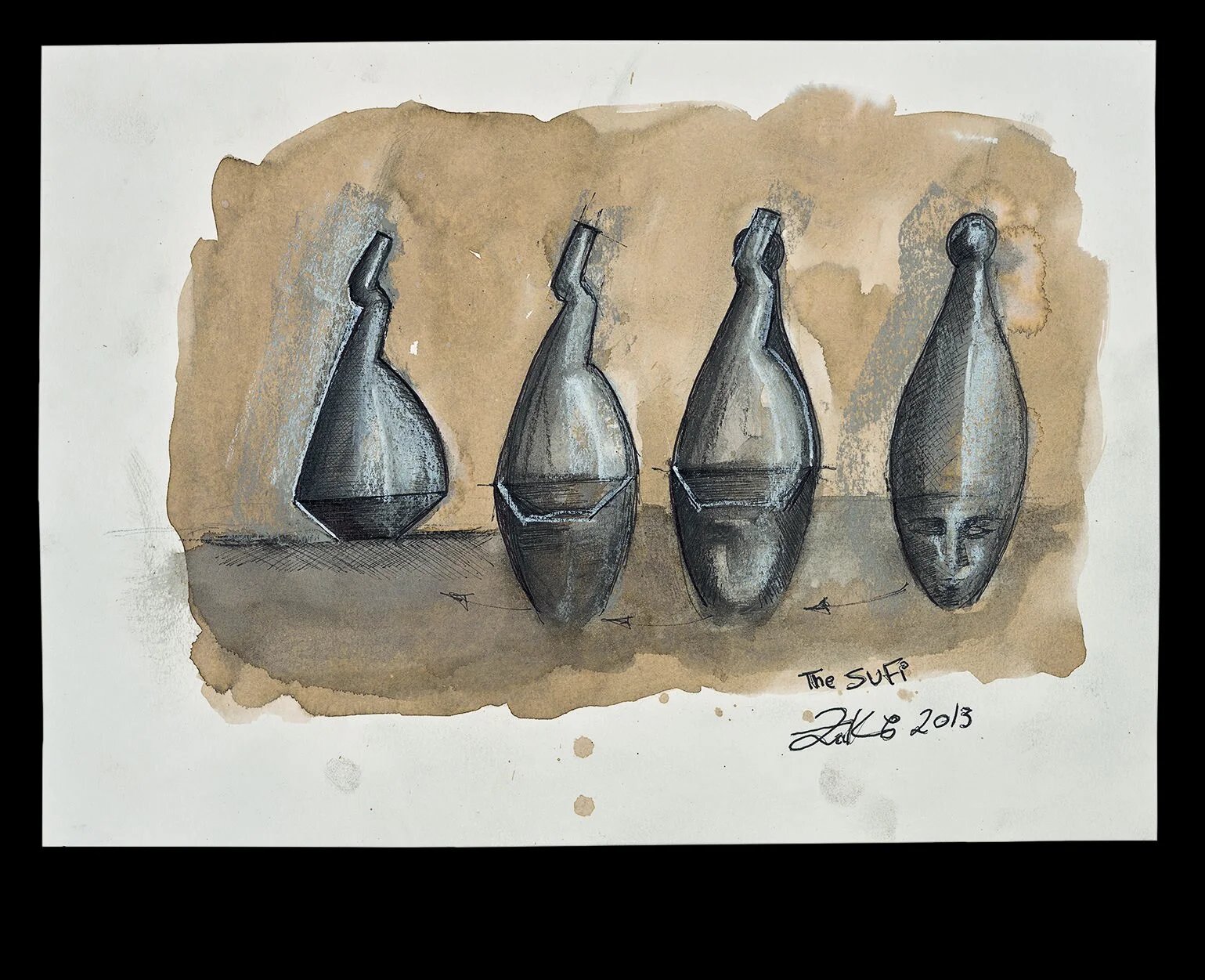 The Egyptian-born artist Khaled Zaki, however, deliberately chose to begin work on his sculptural project The Sufi in 2012, shown in the Egyptian pavilion at the Venice Biennale, at a time when the Middle East “was burning with confrontations”, he said. Zaki's sketches for the work address a doctrine encouraging peace and forgiveness (Reproduced by permission of the artist, Khaled Zaki)