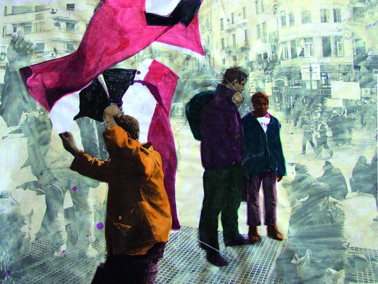 The British Museum’s Islamic and Contemporary Middle East art curator Venetia Porter has authored a new book, Reflections, showcasing the museum’s collection of contemporary Middle Eastern art. Key works added to the museum in the last decade include artists’ responses to the Arab Spring and its aftermath. The Flag, by Mohamed Abla, evokes the exhilaration of the occupation of Tahrir Square in Cairo in 2011 (Reproduced by permission of the artist, Mohamed Abla)