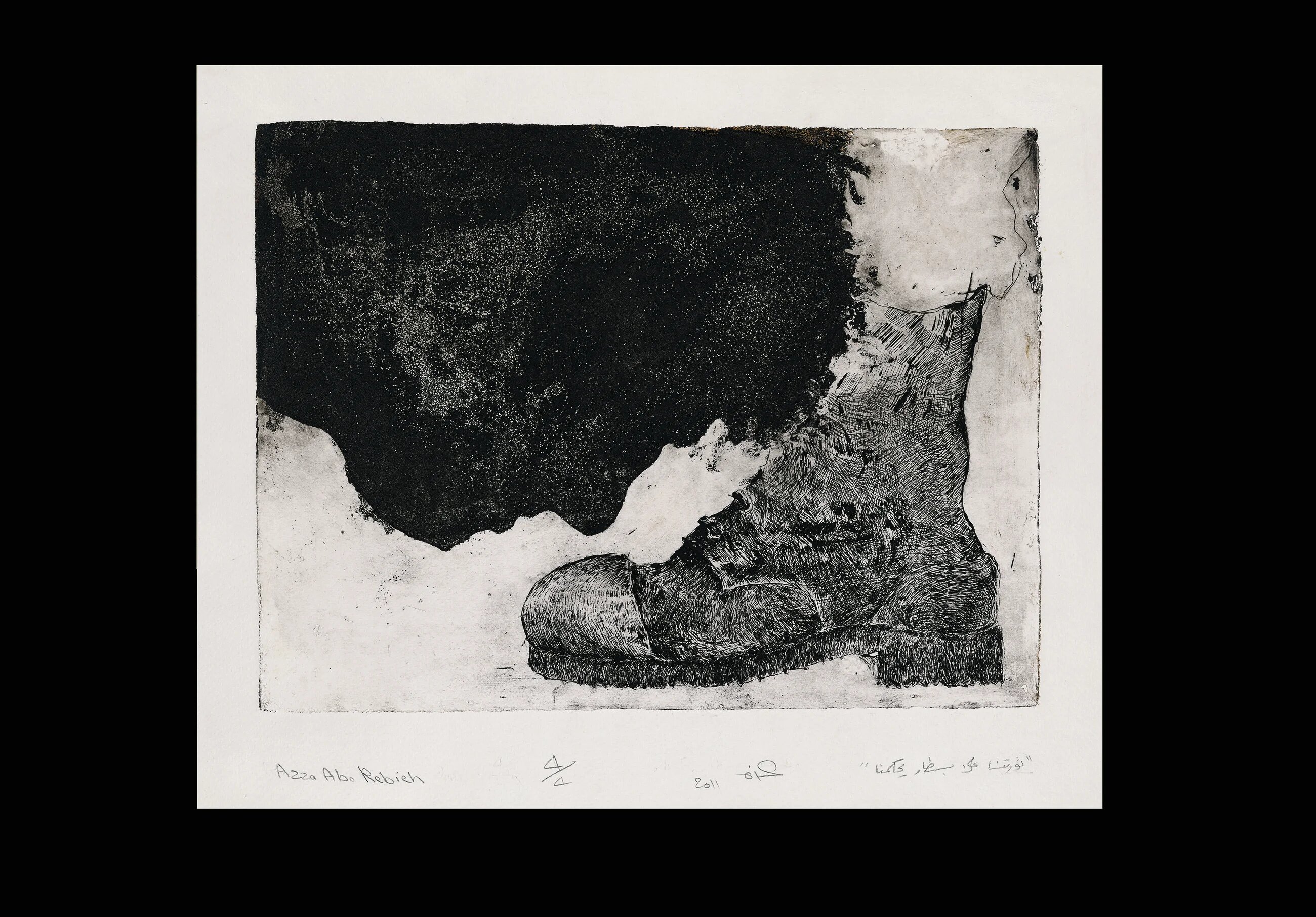 Revolution and war in Syria was the backdrop for work such as Azza Abo Rabieh’s Our Revolution is on the Boot of Our Government, 2011. “A common question has been why the work of so many artists of the Middle East is often overtly political,” Porter writes in her book. “It is of course far from the case that all work made by artists of the Middle East is political, but it is nevertheless a distinct feature.” (Reproduced by permission of the artist, Azza Abo Rabieh)