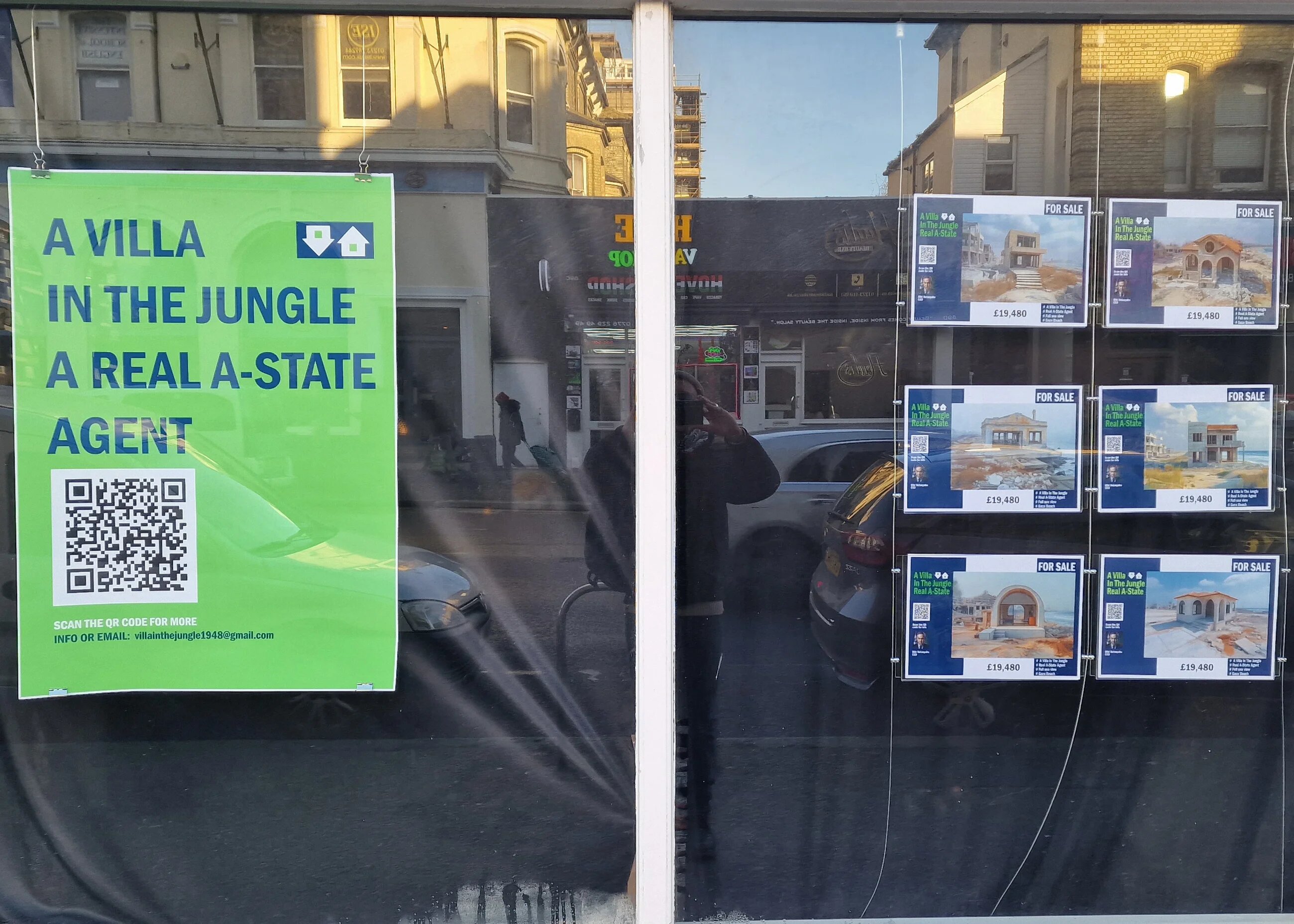 A couple walk up to the display window of a glass shopfront sandwiched between two estate agents in central Hove on England’s south coast and look at window ads for properties for sale - and then, the penny drops.
