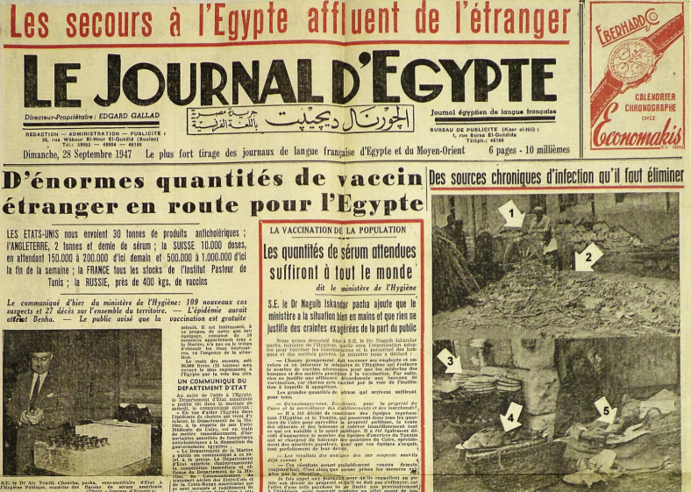 The 1947 cholera outbreak dominated Egyptian media of the day.