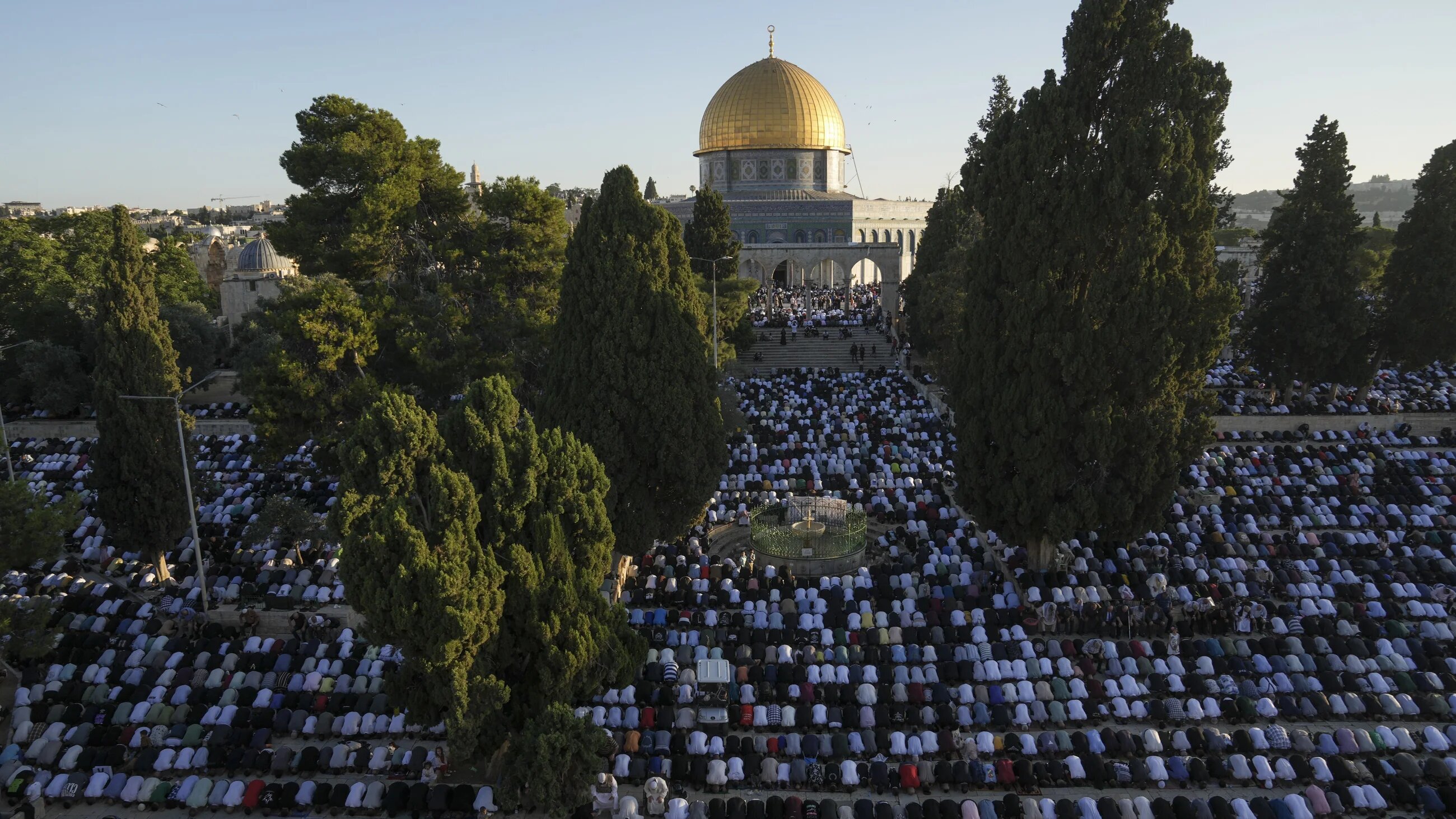 Muslim worshippers offer Eid al-Adha prayers next to the Dome of the Rock shrine at Al-Aqsa Mosque in Jerusalem's Old City. The Prophet Ibrahim, or Abraham, is a revered figure in Judaism, Christianity and Islam, which consider him a patriarch. In the Biblical tradition, he is considered the ancestor of most Israelite prophets, and in Islam, he is believed to be the ancestor of the Prophet Muhammad. (AP Photo/Mahmoud Illean)