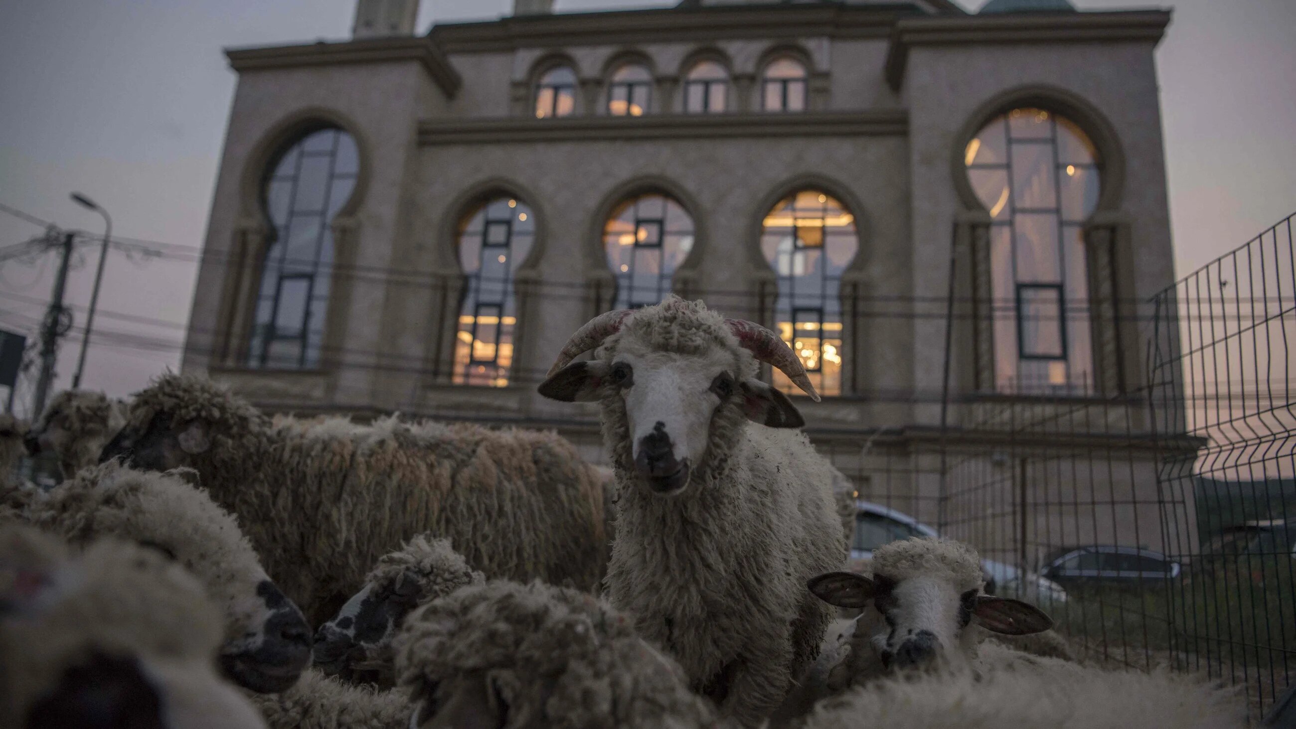 The sacrifice of an animal is a religious obligation for all adult Muslims who are able to afford it. The sacrifice of livestock allows for all Muslims to mark the occasion, particularly the less fortunate. For an individual Muslim, the sacrifice is usually of a small animal, such as a goat, but Muslim families sometimes opt to share the sacrifice of a larger animal, such as a cow or camel. In this picture, sheep await their sale in front of a mosque near Kosovo's capital, Pristina. (AFP/Armend Nimani)