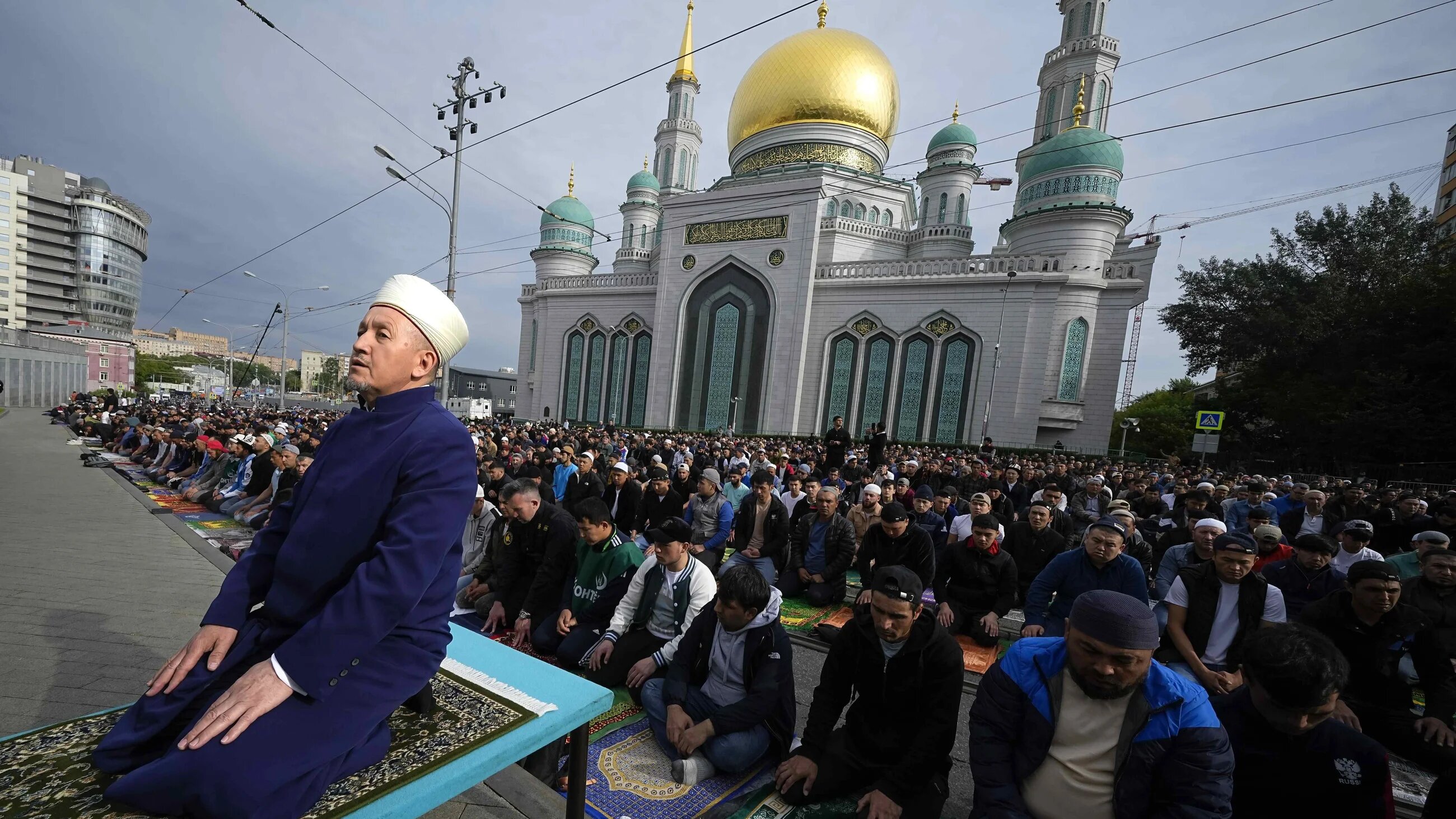 Eid al-Adha literally means "festival of sacrifice" and takes place during the Hajj pilgrimage. Due to differences in opinion on when the Islamic month of Dhul Hijjah begins, not all Muslims will be celebrating Eid on Wednesday, with some countries, including Morocco and Malaysia, marking the occasion on Thursday. In the image above, Muslims pray outside the Moscow Cathedral Mosque on Wednesday, and in the top image a boy holds balloons during prayers at Cairo's historic Al-Azhar mosque. (Above image: AP Photo/Alexander Zemlianichenko; Top image: AFP/Ahmed Hasan)