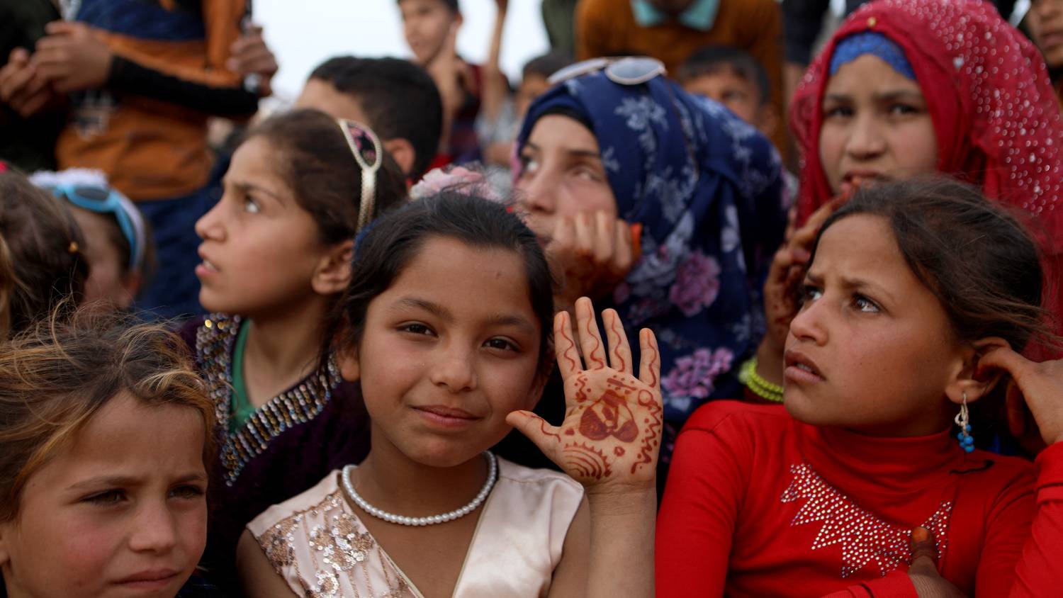 Syrian children celebrate Eid at a camp for internally displaced people in Sarmada, Idlib (AFP/Aaref Watad)