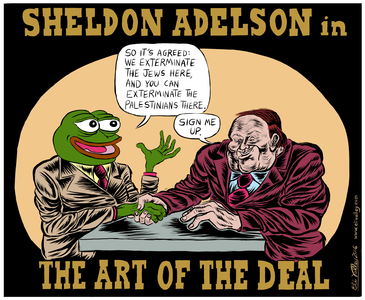 Republican billionaire Sheldon Adelson has been influential on Trump's Israel policy: Pepe the frog has been appropriated as an alt-right meme (Eli Valley)