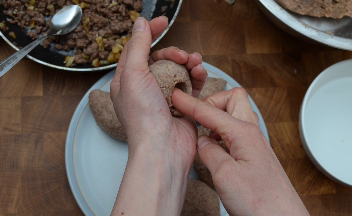 Mould that kibbeh mix into a cup shape (@mounaskitchen/Instagram)