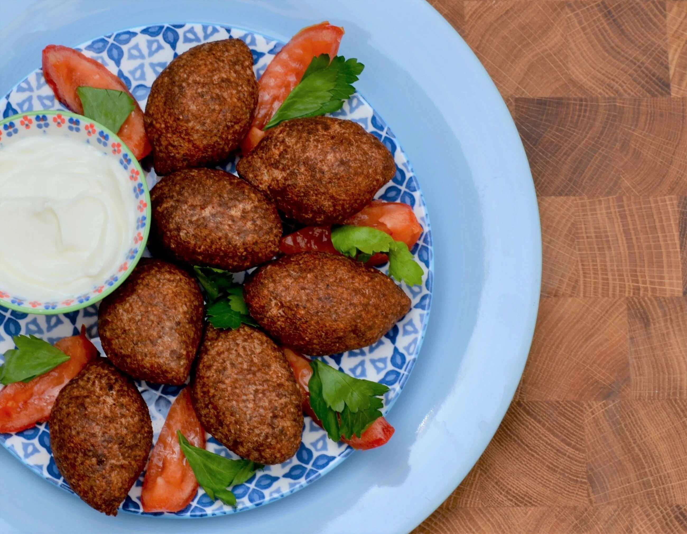 Kibbeh is best enjoyed hot or at room temperature with some yoghurt or a fresh salad. You can also freeze the uncooked kibbeh, then take it out of the freezer as needs be and fry.