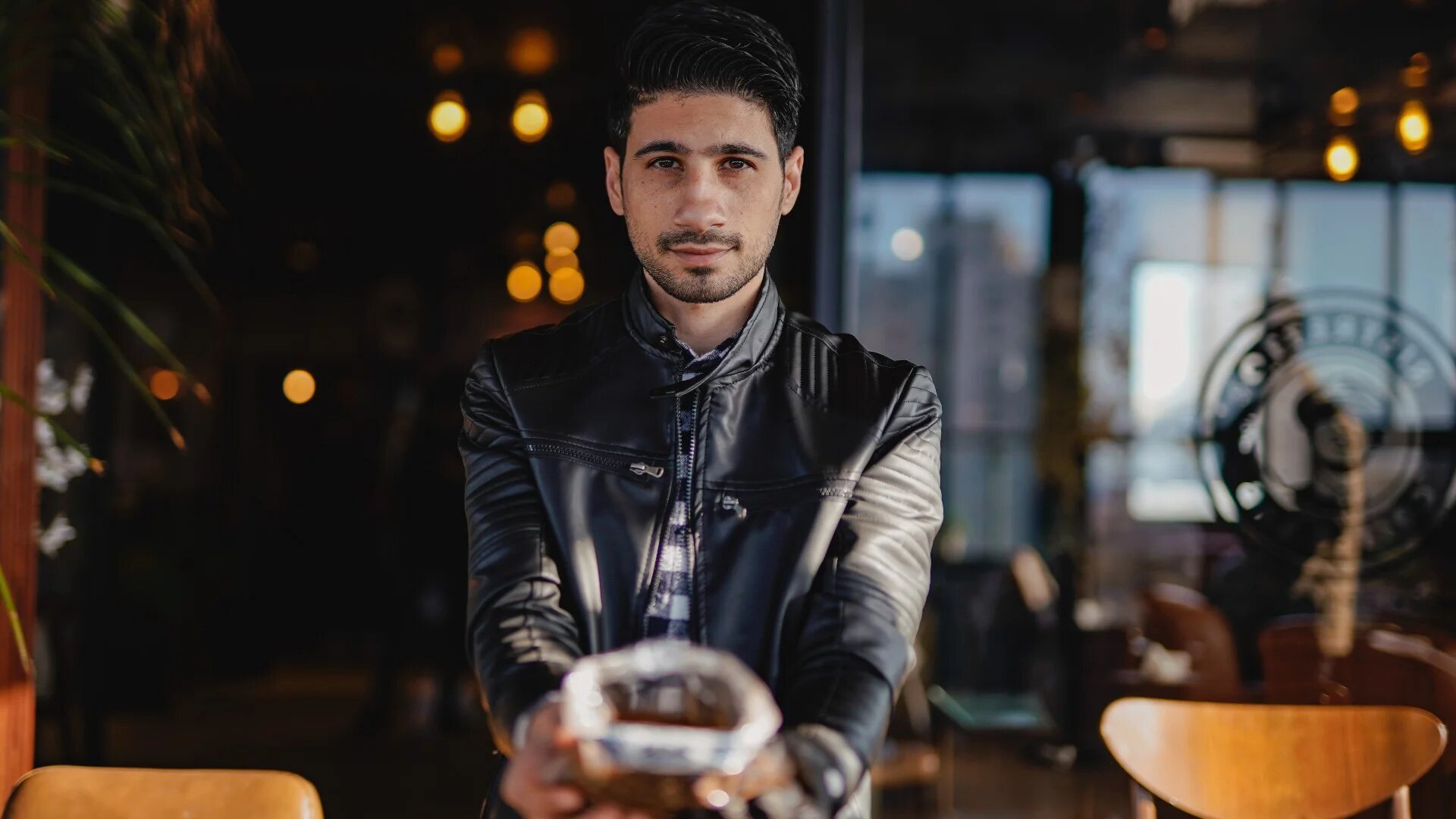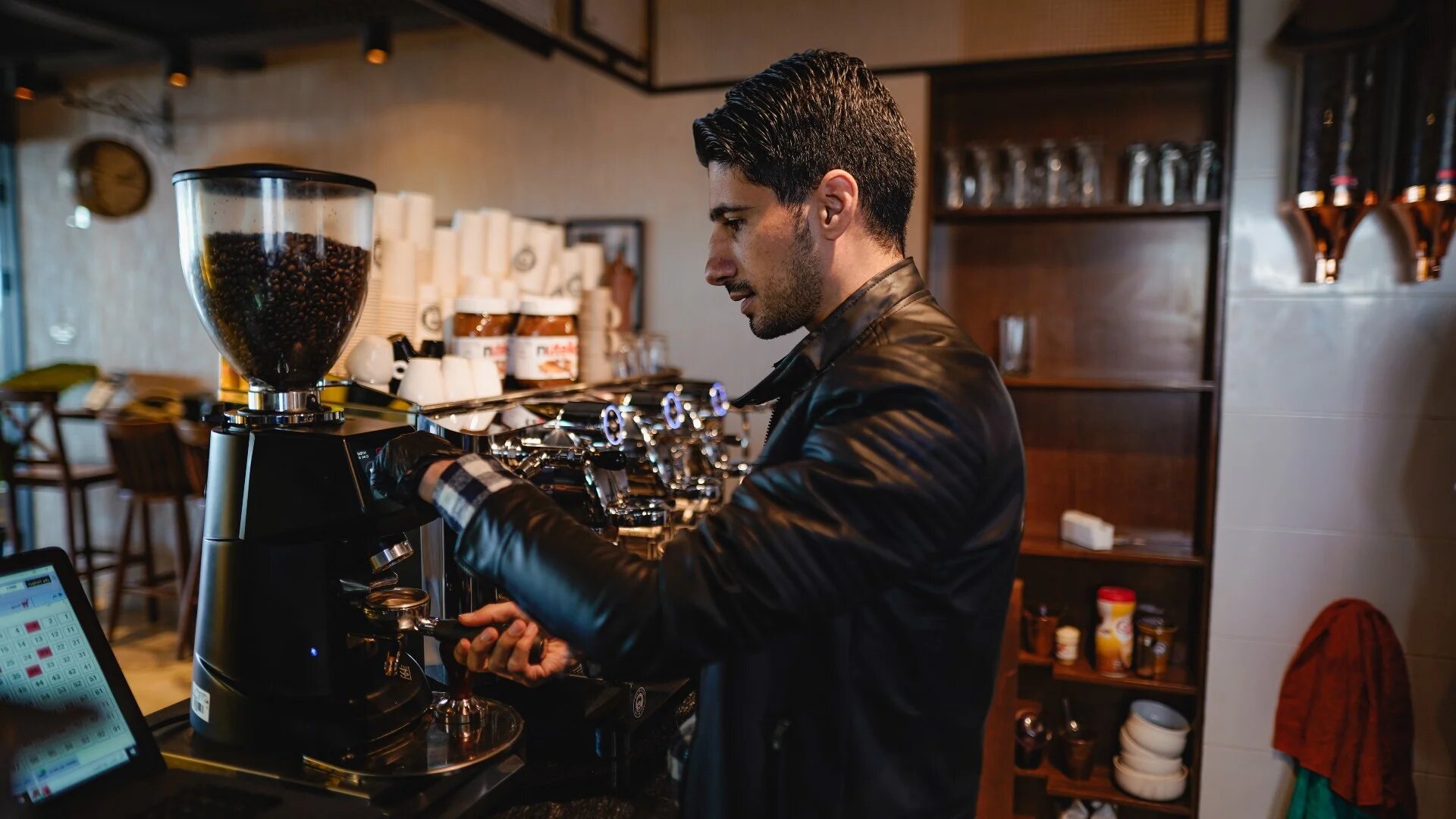 Abdallah el-Safady, 32, is the executive director of Ristretto Coffee Lab, located in Gaza City. While the cafe serves everything from chocolate-drenched baked cheesecakes, bubble tea, and lattes decorated with art, it is best known for its classic coffee, and being environmentally conscious. (All photos by Ahmed Alnadaf)
