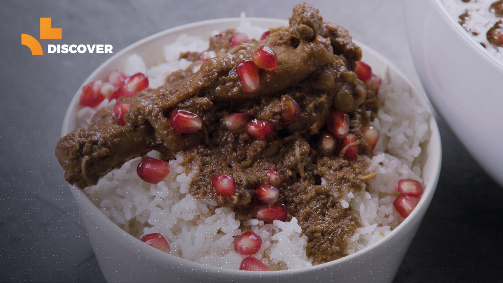 I am obsessed with pomegranates, so this dish truly sits on the highest pedestal for me. Fesenjoon, also known as fesenjan, is a slow-cooked walnut and pomegranate stew that originates from northern Iran. This stew is typically eaten during celebrations and tops my recommendations for dishes to wow your guests with!