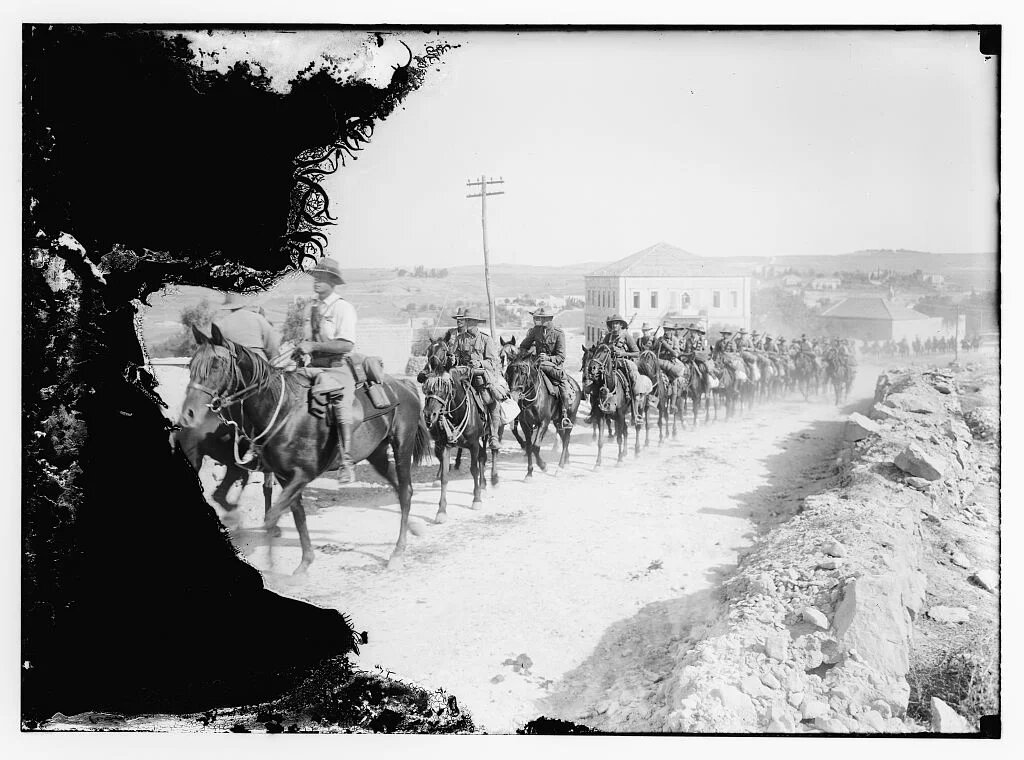 After the Ottoman defeat in the First World War, Britain established a mandate in Palestine and stationed troops from across the British Empire in Jerusalem. Due to its strategic importance, artillery units were placed on the slopes of Mount Scopus. In the picture above, dated to 1918, Australian soldiers are seen riding through Sheikh Jarrah on their way to Mount Scopus. (Library of Congress)