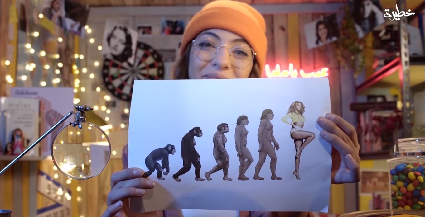 Surrounded by books on feminism and portraits of women’s rights activists, Maria Elayan, the star of a new web-video series, holds up an illustration of human evolution to the camera, where Beyonce represents the most evolved form of the homo sapiens.
