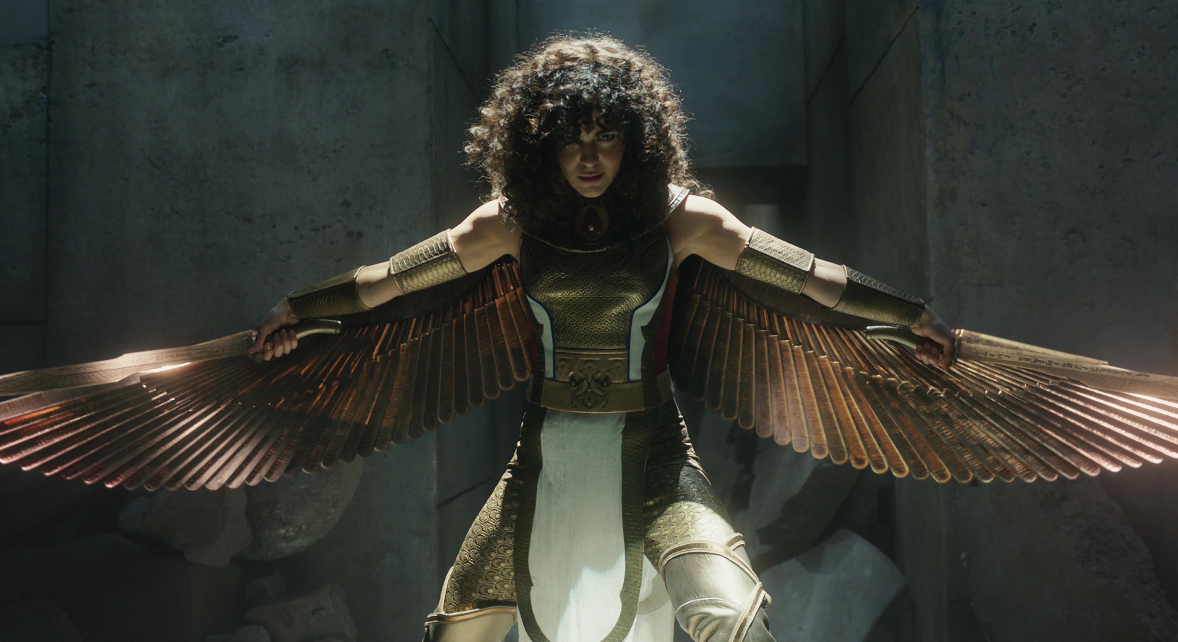Layla El-Faouly, played by Egyptian-Palestinian actress May Calamawy, emerged as the Scarlet Scarab in the finale, replete with an epic outfit that included wings hooked to swords on each side.