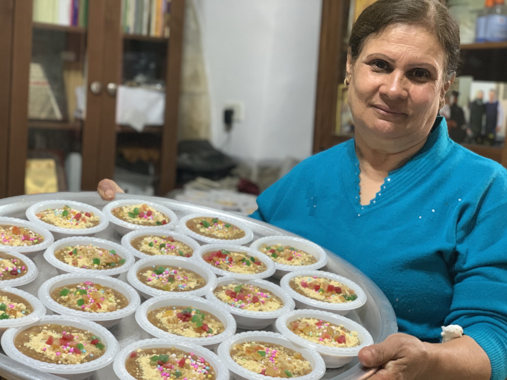 “Our mothers would grind the wheat by hand, then boil it, then add sugar, fennel and anise, and serve it on a plate with bread.”