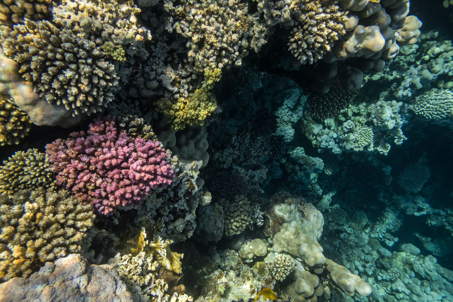 A few metres further out from the pools, where the reef slopes down to deeper, open water, the corals, while not flourishing, do seem in much better shape. And many less enclosed diving and snorkelling spots in Dahab still boast healthy looking, prolific coral cover.