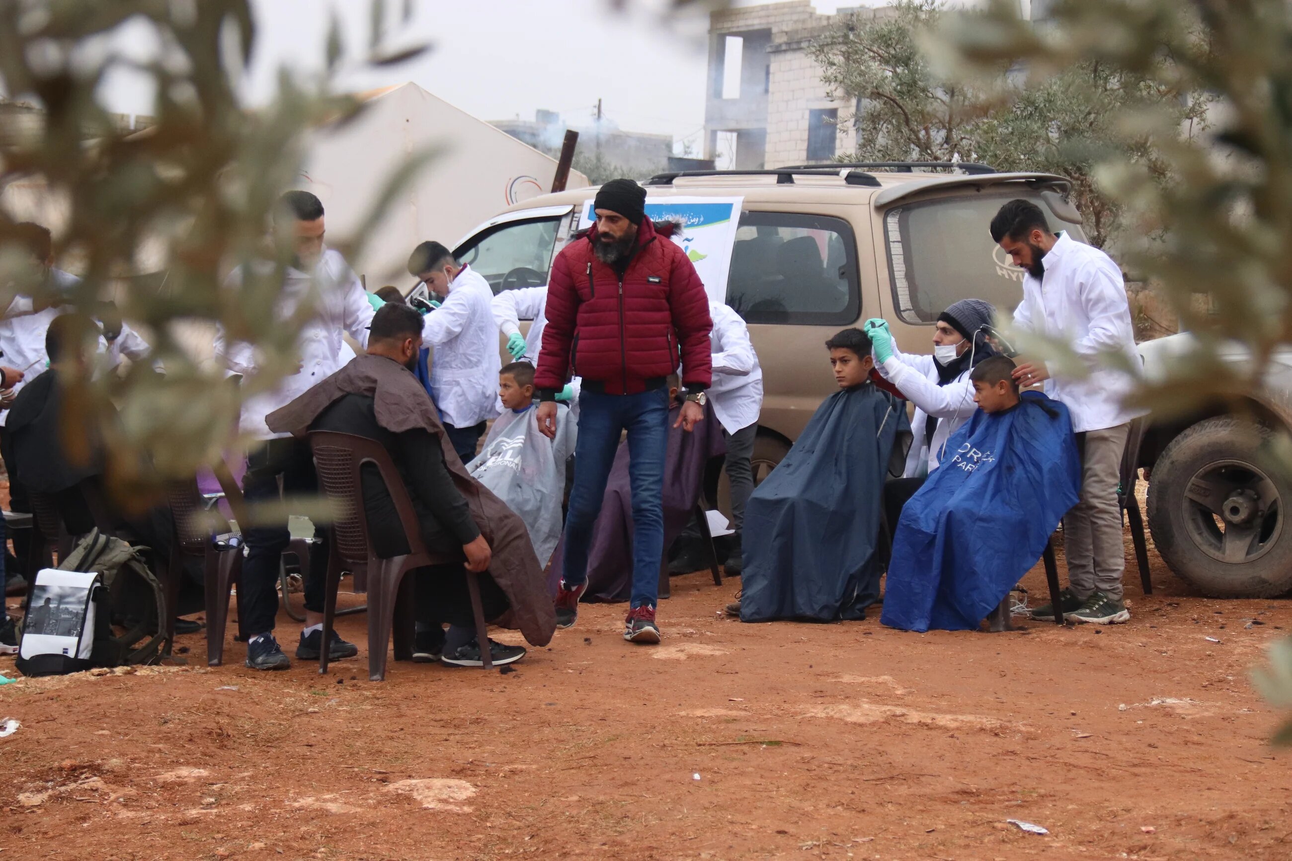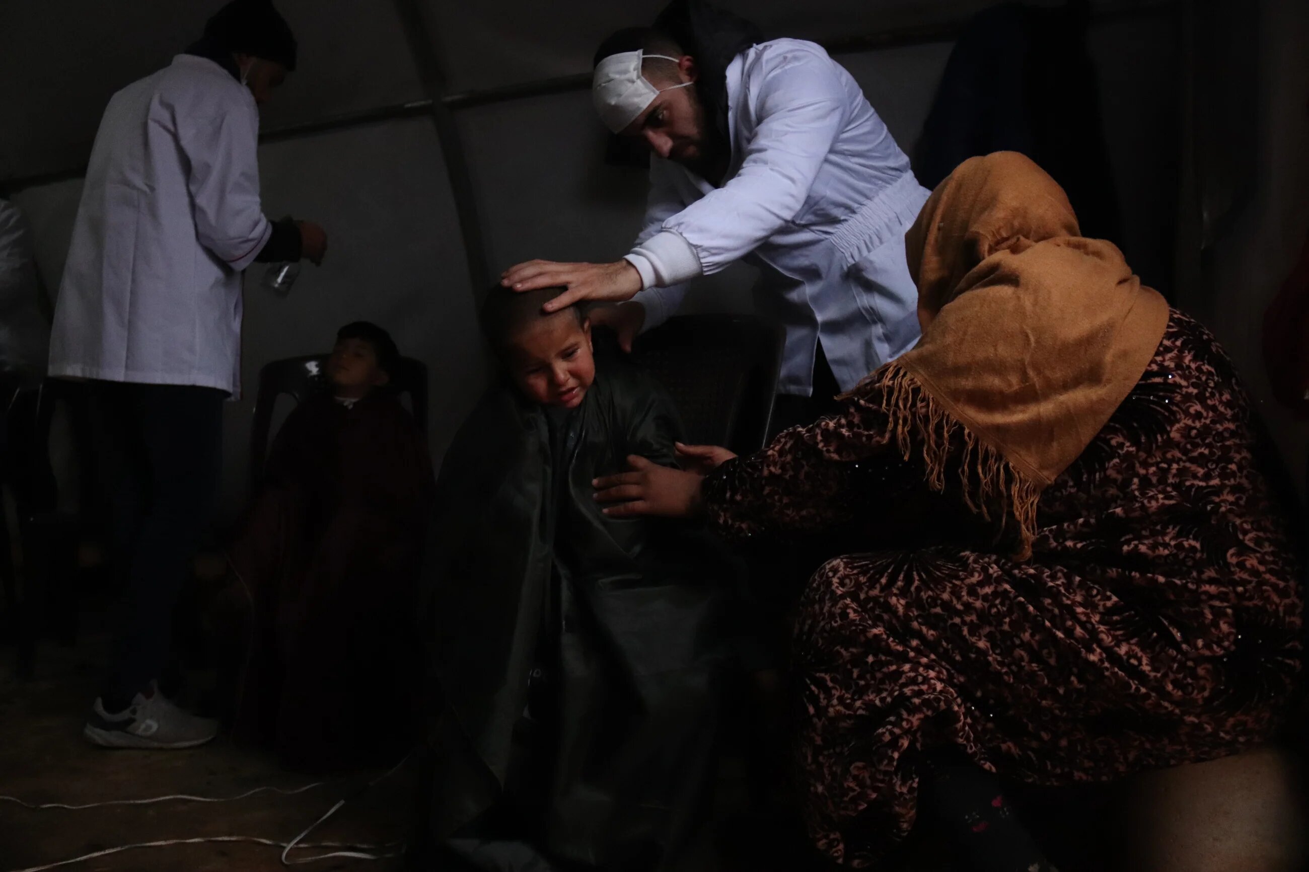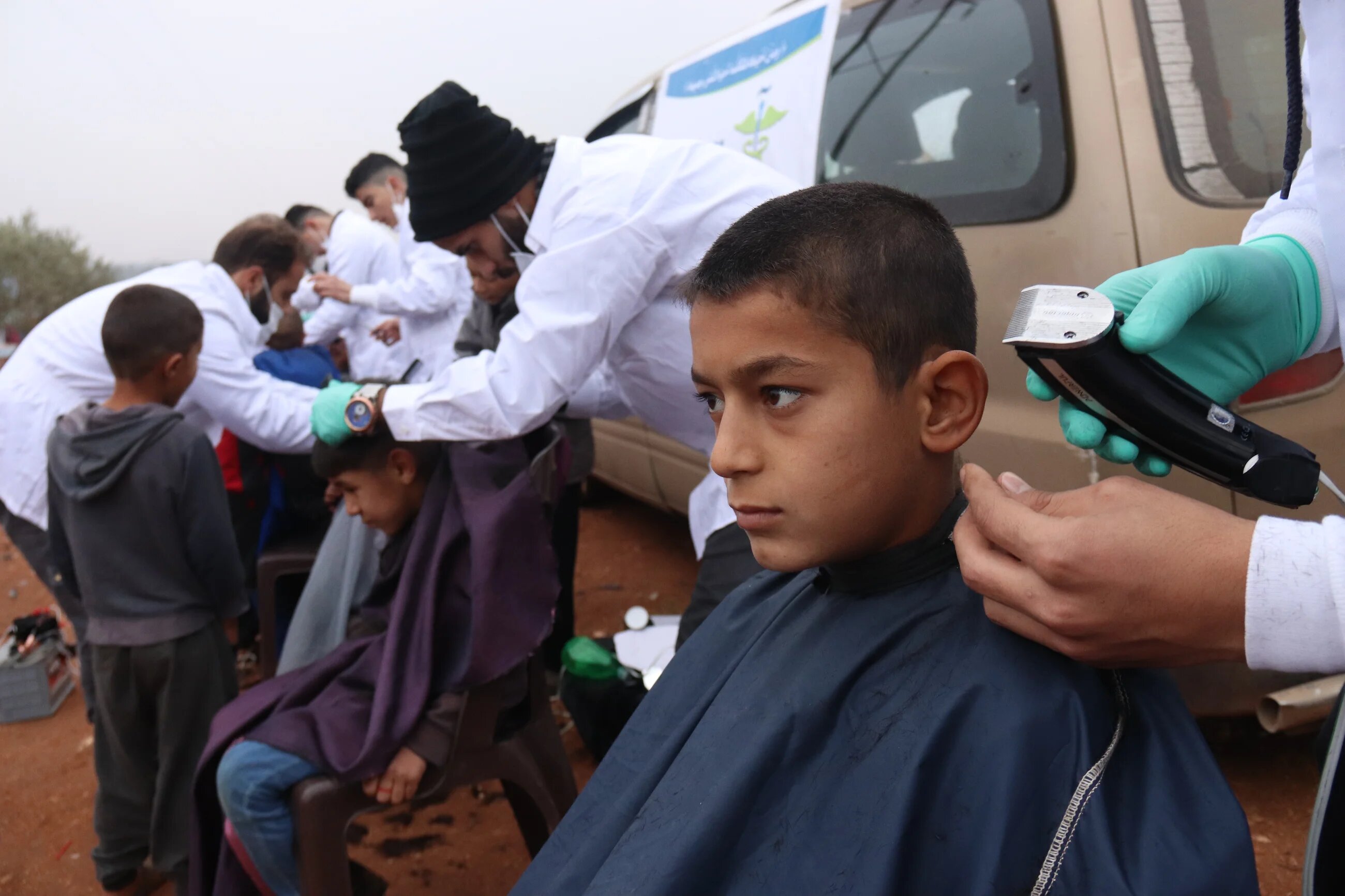 For some, a makeshift hair salon is a respite from poor conditions along the border area. “It’s been forever since I went to the barber,” one boy said, while a volunteer buzzed his hair. “Someone is remembering us, even if it’s just for a haircut.” (MEE/Muhammad Al Hosse)