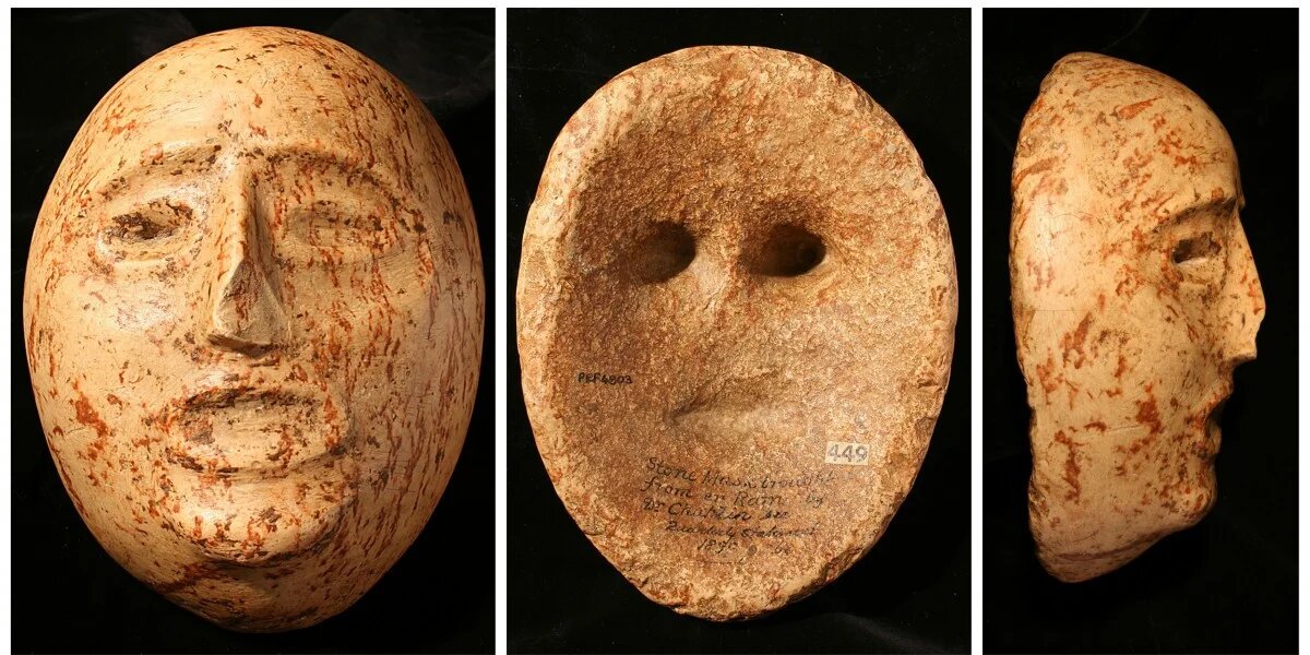 “A woman brought me a very curious stone mask, which I immediately purchased for a small sum,” wrote Chaplin, who was then the director of the evangelical London Society for Promoting Christianity Amongst the Jews’ hospital in Jerusalem.