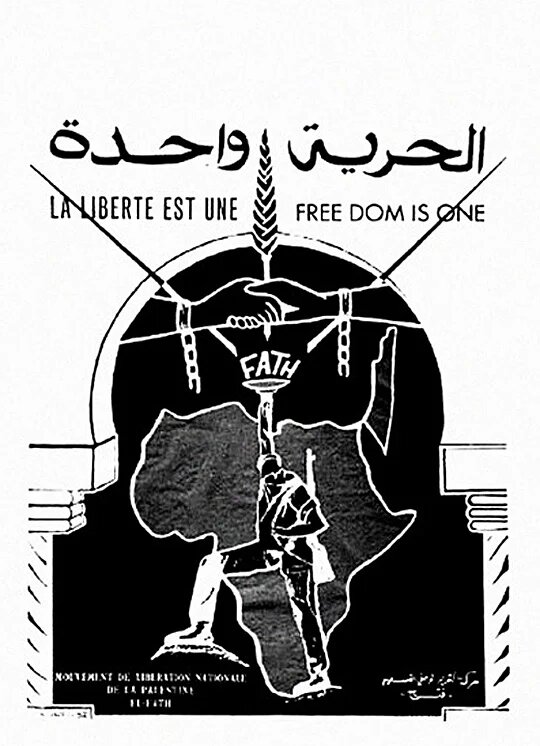 This poster lauding the Fatah movement and Afro-Palestinian unity was made in Arabic, French and English by the French photographer Guy Le Querrec and is part of a series promoting the Pan-African Cultural festival. (Guy Le Querrec)