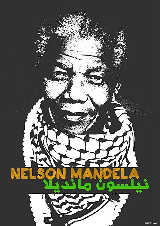 In 2016, the South African city of Johannesburg donated a 20-foot statue of Nelson Mandela to the occupied Palestinian city of Ramallah. The first president of post-apartheid South Africa was also one of the loudest advocates of Palestinian liberation in international politics. This poster designed by the Palestinian artist Hafez Omar in 2016, represents Mandela’s revered status amongst Palestinians and his statue serves as a symbol of African and Palestinian solidarity. (Hafez Omar)