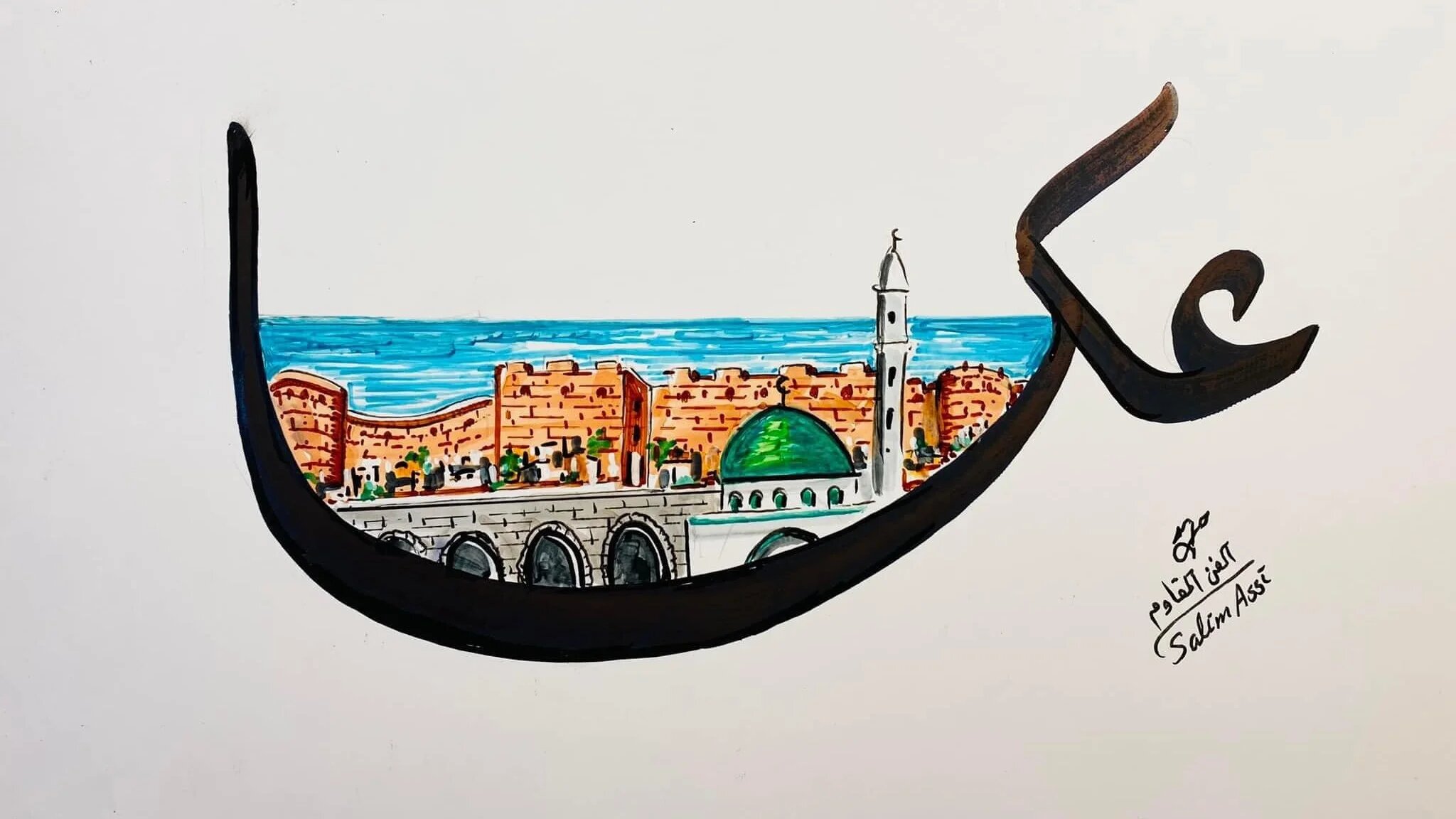 Assi’s work has been widely shared on social media, with many re-posting and re-sharing it. “The art has been very popular around the world. I have had people contacting me from Canada, USA, Latin America and Australia,” he says. For Assi, illustrating the different skylines of Palestinian cities along with their Arabic names in calligraphy is much more than about sharing his heritage. For him, it’s about the right of return to Palestine. “It’s about Palestinians insisting on coming back to their homelands, their cities and villages. And we will, soon,” he says. Assi has illustrated some of the main landmarks in Akka, a city by the coast, in this image.