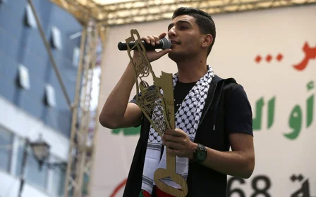 The singer, who is from the besieged Gaza Strip, is represented by the label Platinum Records, which is owned by the Saudi-based entertainment giant MBC.