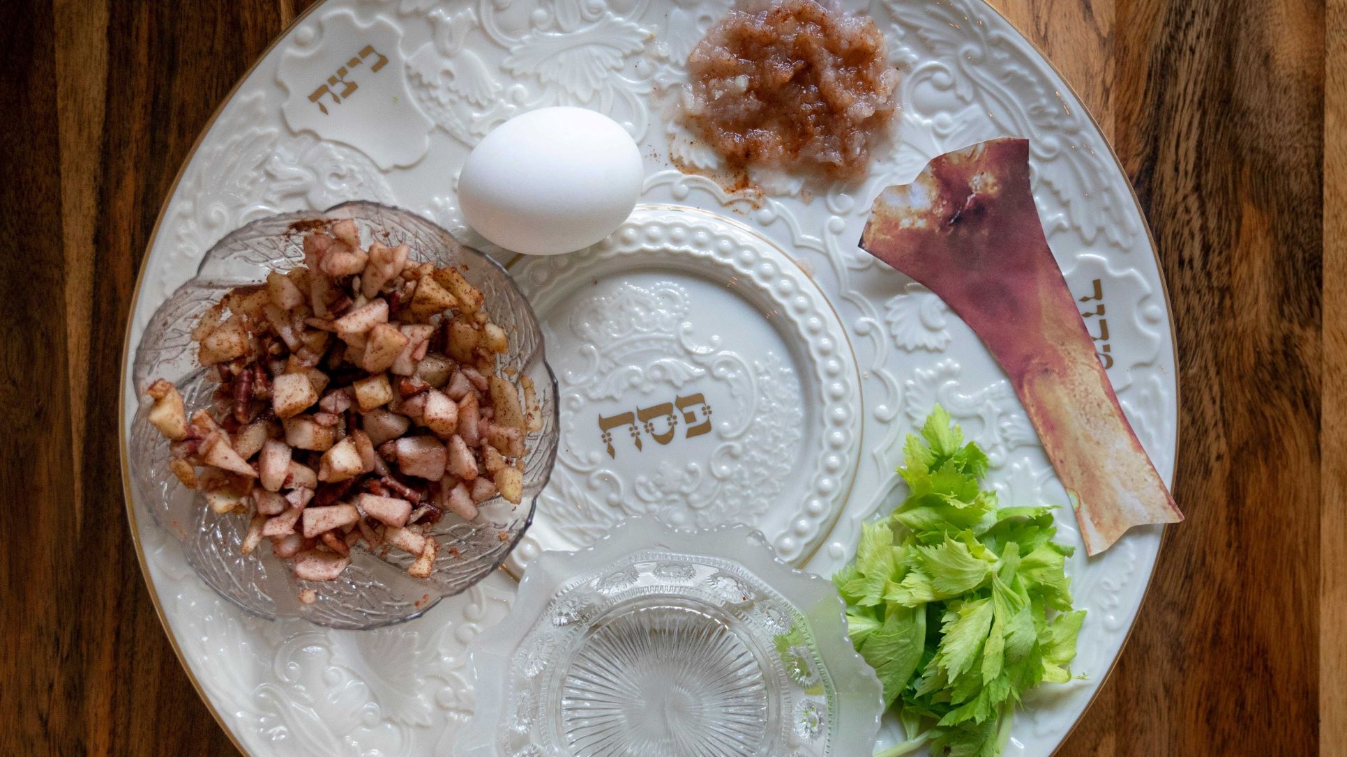 A hard-boiled egg is also found on the plate, serving as a reminder of the destruction of the Temple in Jerusalem as well as the strength of Jews in their faith in the face of hardship.