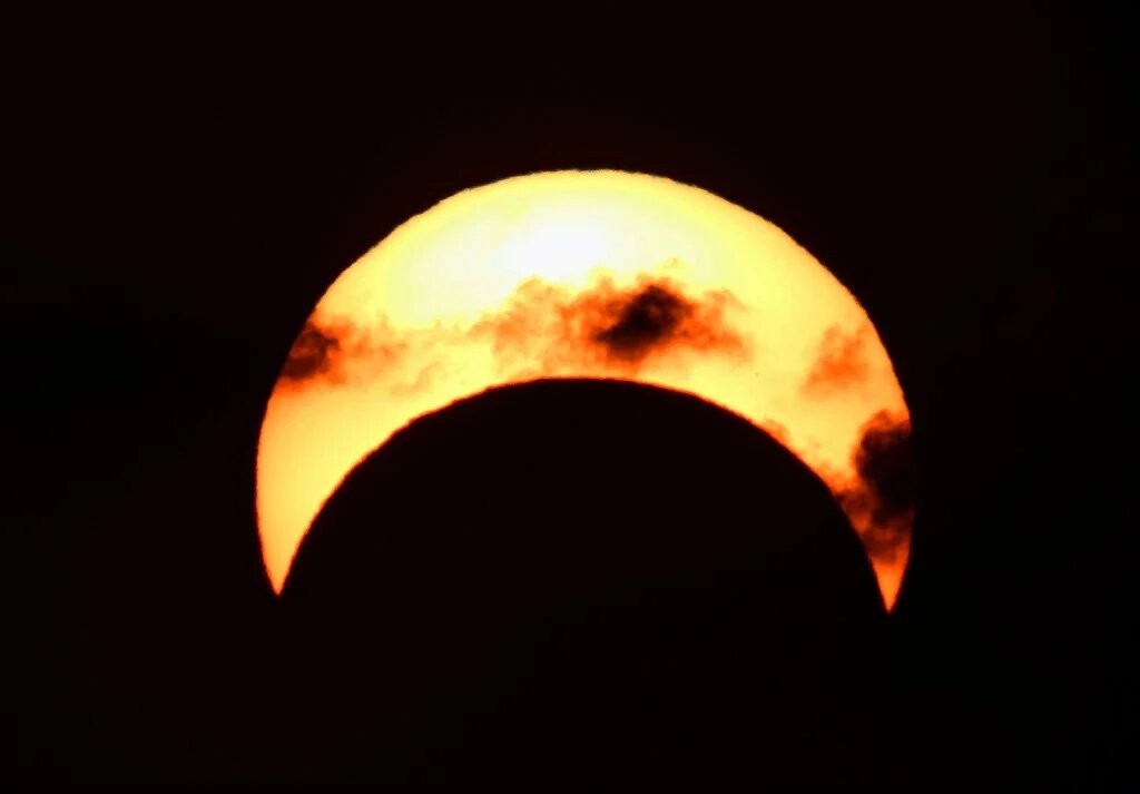 This picture taken early on 26 December shows a view of the sun in Kuwait City during the partial solar eclipse event (AFP)