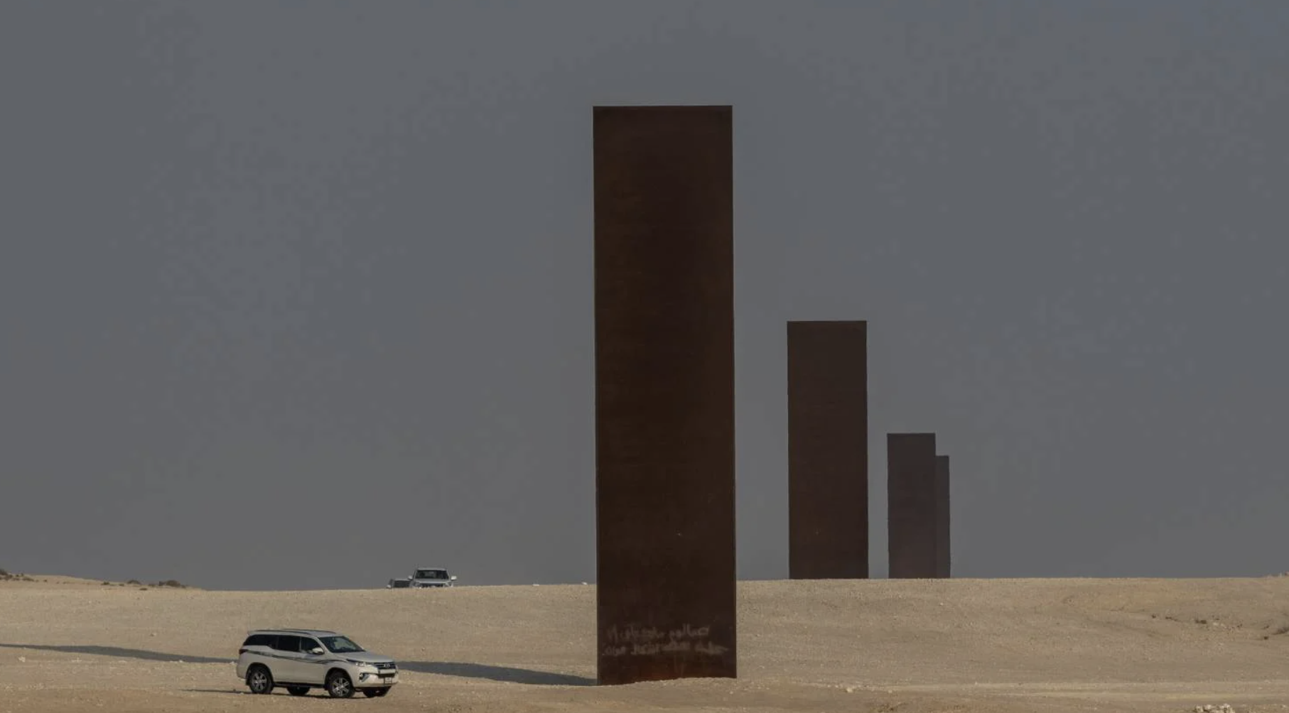 Named East-West/West-East, the work features four gigantic steel panels, over 14 metres in height, spread across a kilometre in the Brouq Nature Reserve, west of Doha.