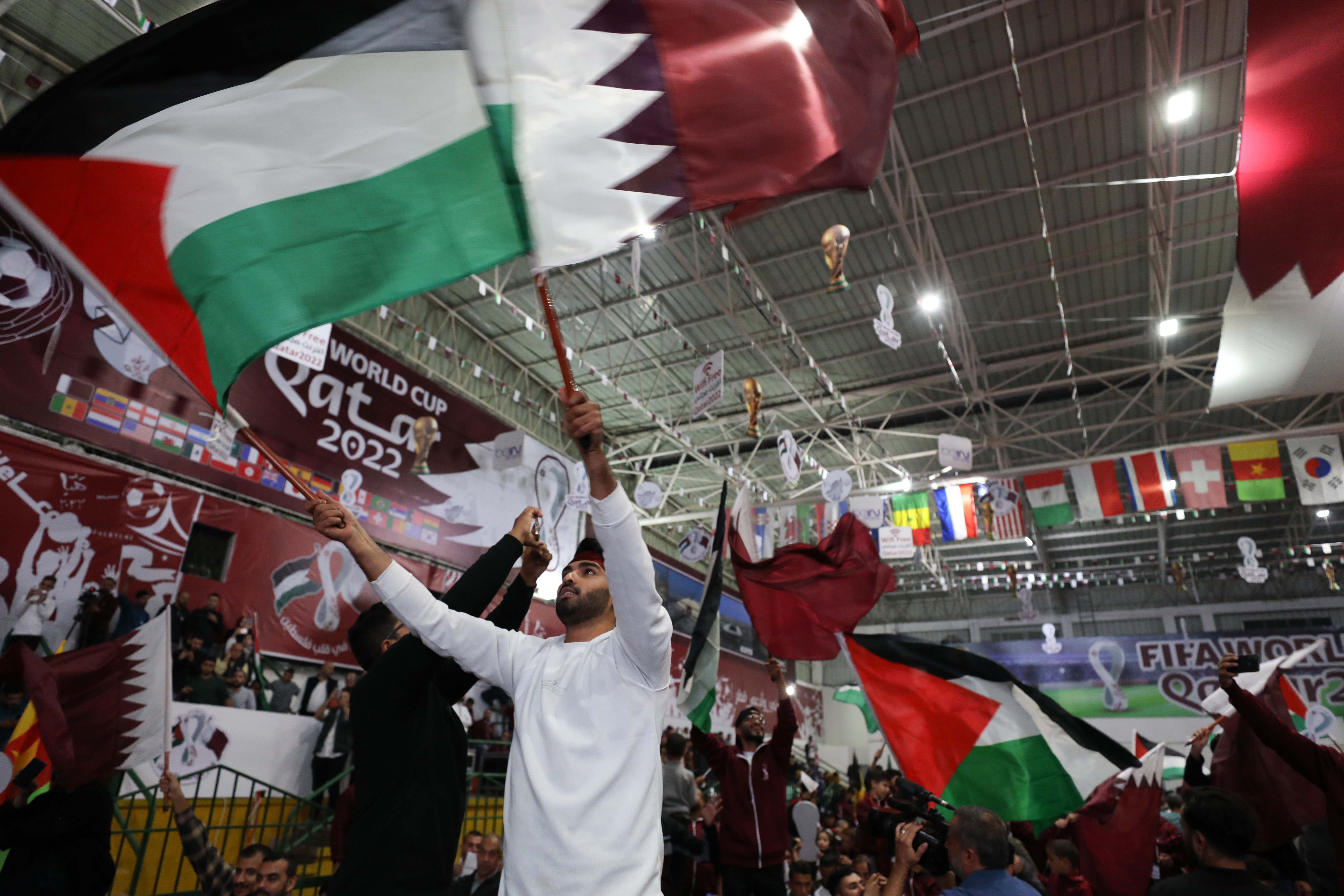 Some Saudi and Qatari fans were seen distributing Palestinian flags among fans.