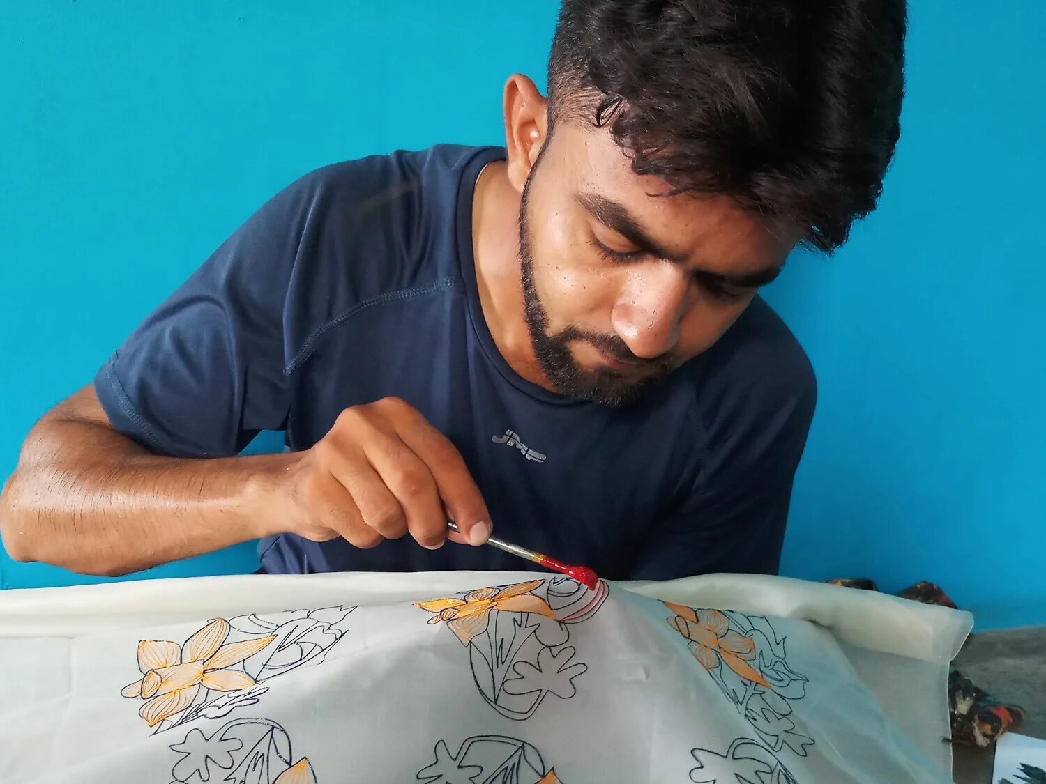 Traditionally, the artists would mostly use it on bridal clothes, creating floral patterns and thick borders with different colours.