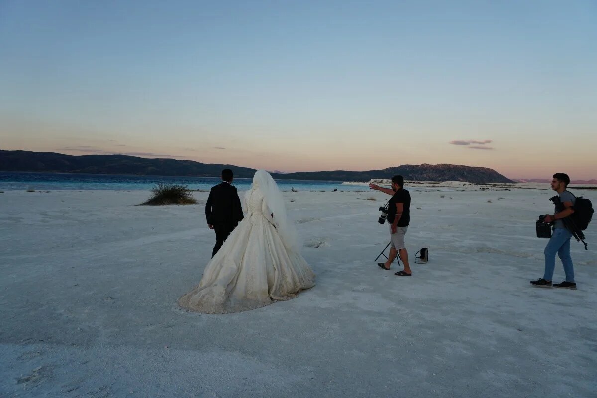 Burdur’s lakes region, and Salda in particular, is also a favoured wedding photography location, situated at 1,193 metres above sea level and tucked between valleys surrounded by forests. A newly-wed couple from the northeastern Black Sea province of Artvin said this is why they came here. “The view is great, all natural,” said Cemal Ozkurt, who just married his sweetheart (above), treading carefully on the hard ground with the turquoise lake in the backdrop. (MEE/Nimet Kirac)