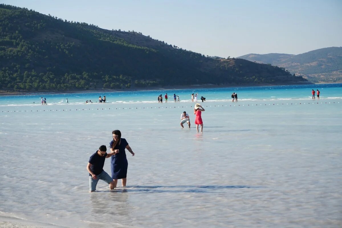 In addition to being a scientific anomaly, Lake Salda is also a popular tourist destination in Turkey. Visitors quickly realise that this is not a normal lake, as the thick delta deposits mean the composition of the lakebed is denser than usual. Despite its Maldives nickname, the texture of the ground along the shore is more like hardened cement than white sand, before the clear water turns it into clay.