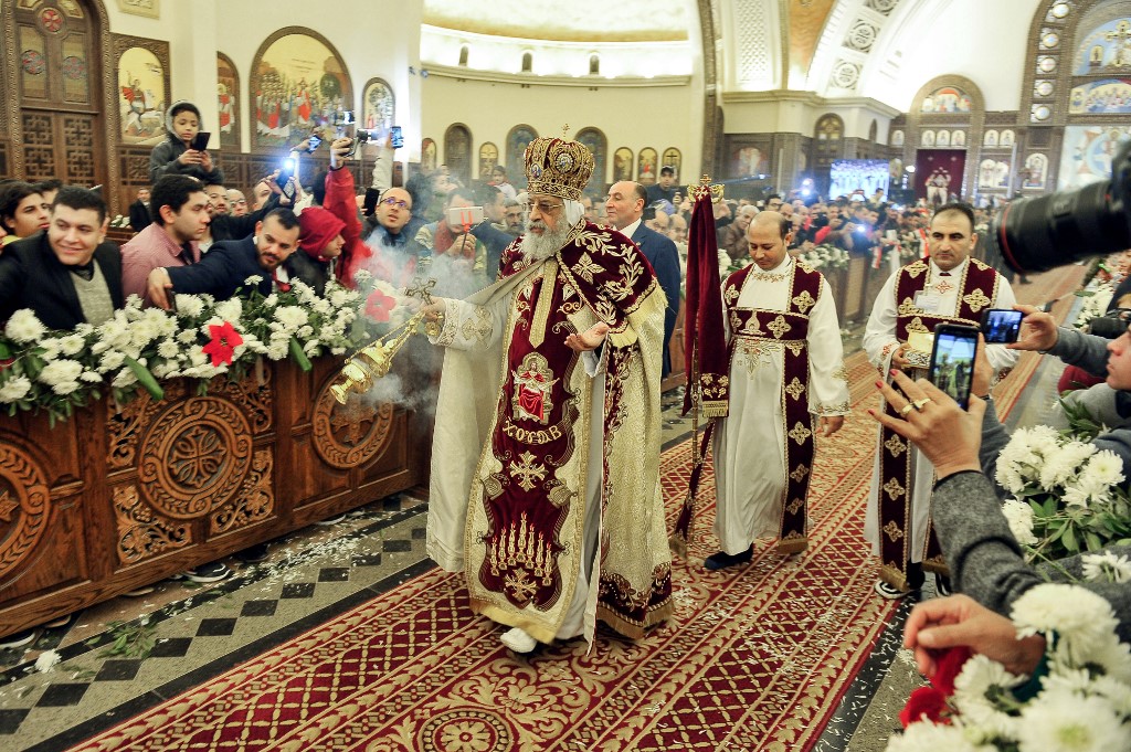 Pope Tawadros II of Alexandria leads mass at the Cathedral of the Nativity of Christ on 6 January 2020 (AFP)