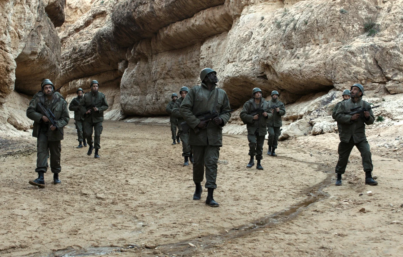 At the peak of the war, two men (played by Slimane Benouari and Lyes Salem) embark on an ominous expedition in the middle of the Sahara to hunt down the eponymous terrorist. That’s the basics of a film where identities, motivations and logic are uncertain till near the end.