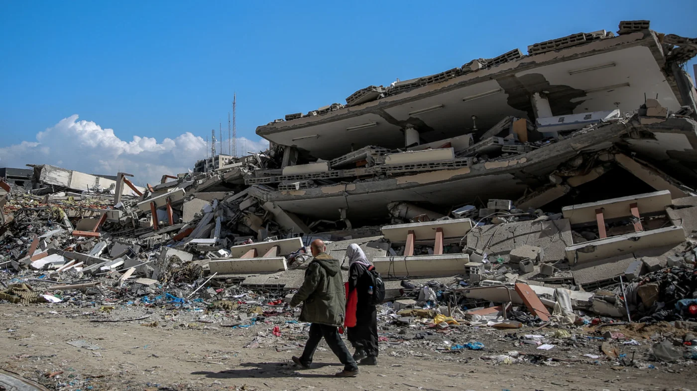 Al-Aqsa University, levelled by Israeli bombardments, pictured on 15 February 2024 (Reuters)