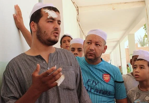 “The attack began just after dawn prayers, around 4am. We heard cries and went up on the terrace. The house was surrounded by men whose faces were obscured by an Arabic scarf [headscarf worn by men in the Sahara], armed with iron bars and knives. We negotiated to have the women evacuated. They jumped over the courtyard wall; we were beaten and Molotov cocktails were thrown at our house, which was completely burned," Ammar said.