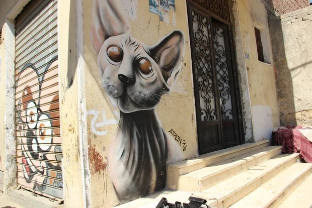 One of them uses the pseudonym Franek Mysza, the name of the mouse he has been painting for 12 years, with the aim of hopefully giving a smile to passers-by. The cat, a revered animal in ancient Egypt, is still loved by Egyptians today.