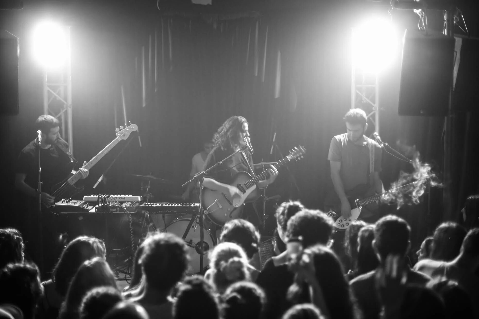 After the first song, a man with salt and pepper hair immediately climbed up onto the stage. He whispered to the artist, moved a few cables around and fixed a minor sound issue. Paying close attention to every detail but keeping a low profile, this is music producer Fadi Tabbal, who has been described as the godfather of alternative music in Lebanon.