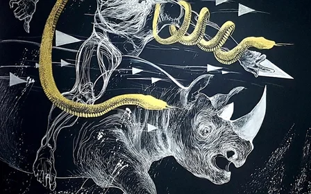 One striking work is a manuscript from the Hamzanama from the 16th century, based on a series of legends about Amir Hamza, the uncle of Prophet Muhammad, which were passed down the generations through storytelling and describe him in a variety of valiant acts, such as his defeat of a two-headed lion with one blow of his sword.
