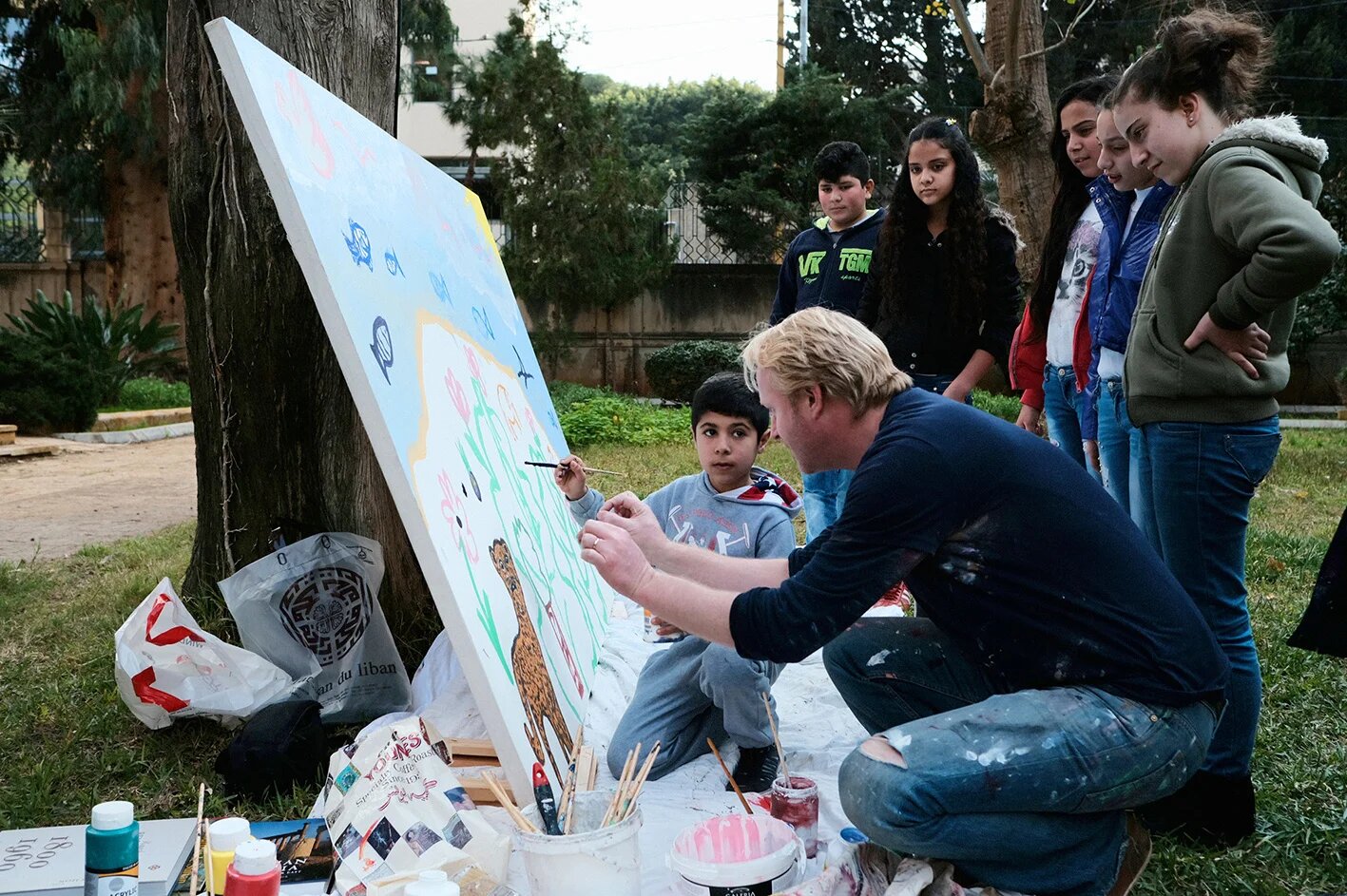 “I felt like I had unfinished business in Lebanon.” He returned not only to finish his landscape, but to conduct art workshops with children in some of the areas affected by the war.