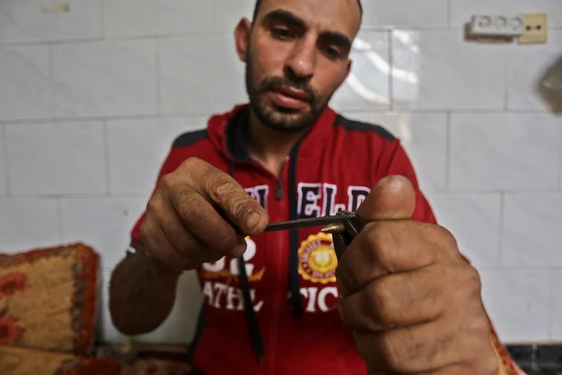 GAZA STRIP - On any given day, Majdi Abu Taqqeyeh can be found scouring the border between Gaza and Israel, collecting remnants of Israeli bullets.