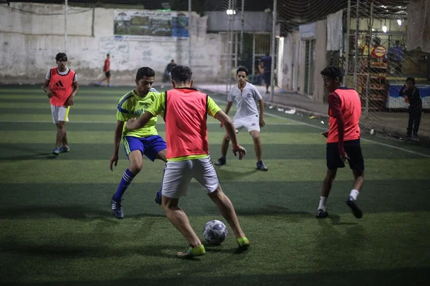 Every Saturday from 8pm until midnight, Mina Bindari coaches about 150 footballers of various ages at the Alex Sports Stadium (MEE correspondent)
